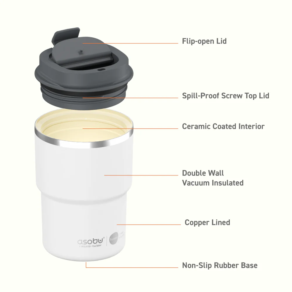 Asobu Coffee Express to kompaktowy kubek termiczny, który łączy minimalistyczny design i najwyższą jakość wykonania. W pastelowym błękicie prezentuje się nowocześnie i subtelnie, idealnie wpisując się w codzienny rytm - od porannej kawy po popołudniową przerwę. Wewnętrzna powłoka ceramiczna Puramic™ eliminuje metaliczny posmak, a podwójne ścianki z izolacją próżniową utrzymują temperaturę napoju przez wiele godzin.