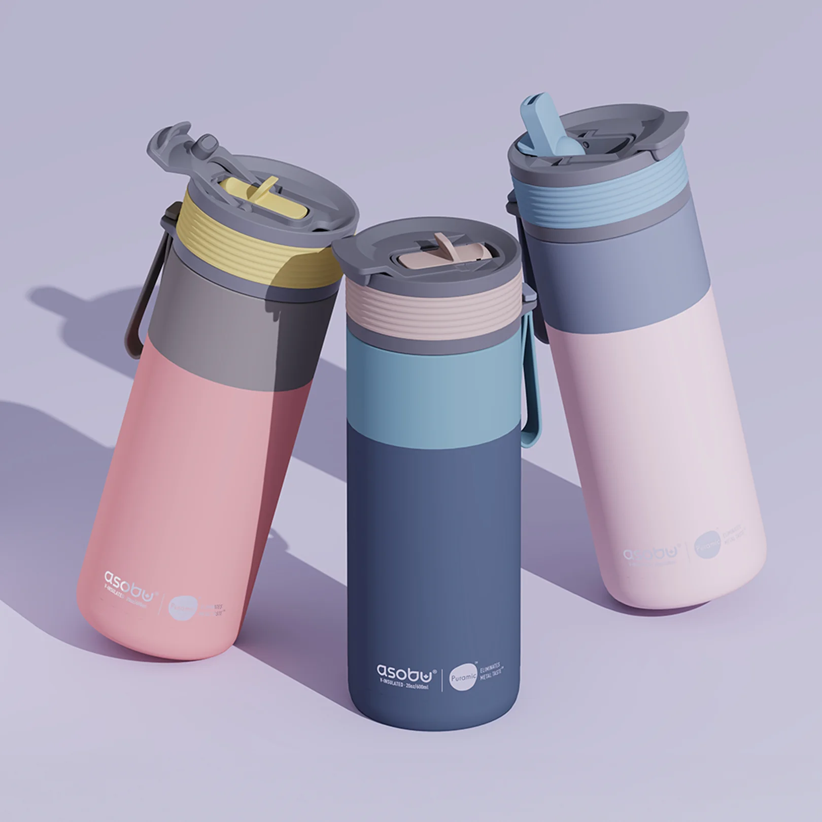 Kubek termiczny z powłoką ceramiczną 2w1 Aspen Asobu pastelowy róż 600 ml