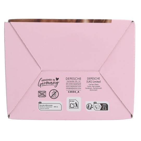 Wykonany z porcelany New Bone China, jest lekki, delikatny i estetyczny, a jednocześnie trwały. Mieści 250 ml ulubionego napoju: kakao, herbaty, mleka czy soku. Ze względu na złote zdobienia wymaga mycia ręcznego i nie nadaje się do mikrofalówki.