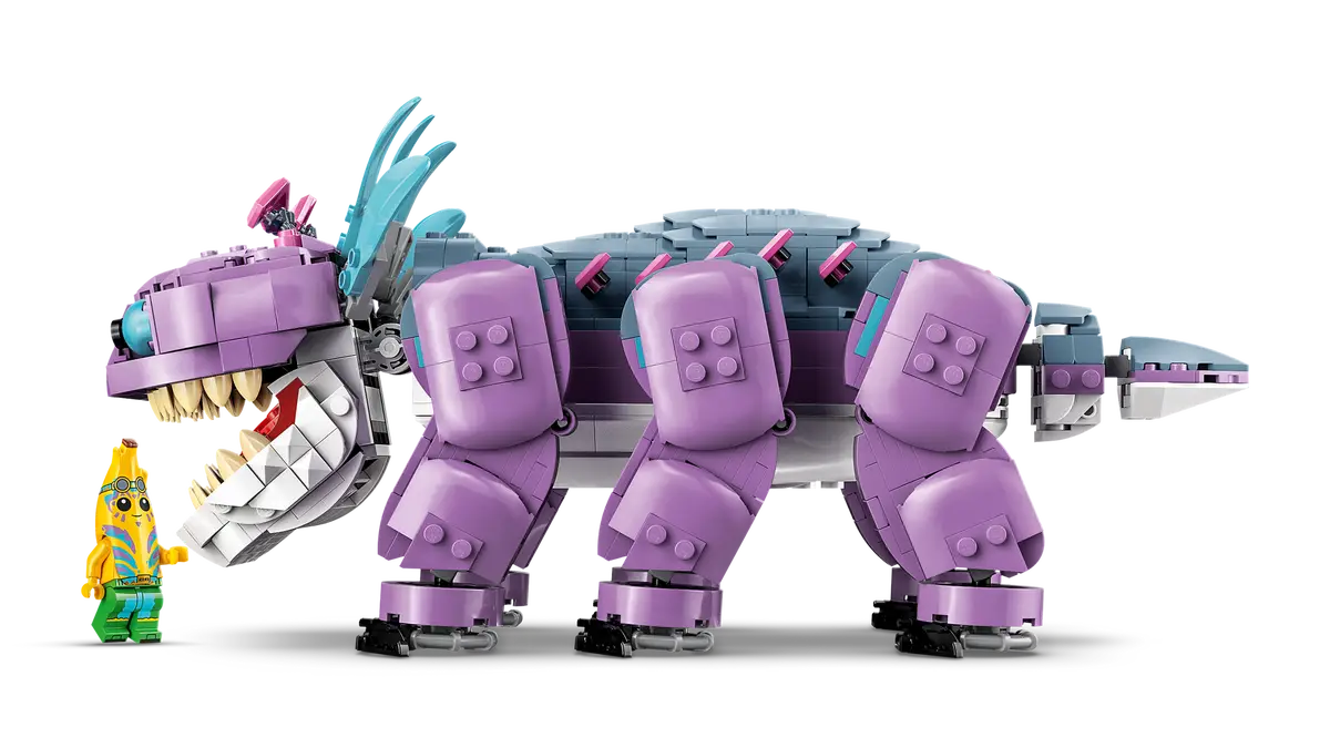 Klombo to duże stworzenie znane z gry wideo LEGO Fortnite®. Ten zestaw konstrukcyjny pozwala chłopcom i dziewczynkom odtworzyć je z klocków LEGO. Po zbudowaniu można odkrywać jego świetne funkcje, takie jak ruchome nogi, otwierany pysk i obracający się ogon. W zestawie znajduje się także krzaczek klombojagody z odczepianymi owocami — dzieci mogą rozzłościć Klombo, a potem go nakarmić, by znów się zaprzyjaźnić. W komplecie są też dwie minifigurki: Przygodowy Skórek z Tropików i Oro, które można posadzić na grzbiecie Klombo i odgrywać wymyślone przygody.