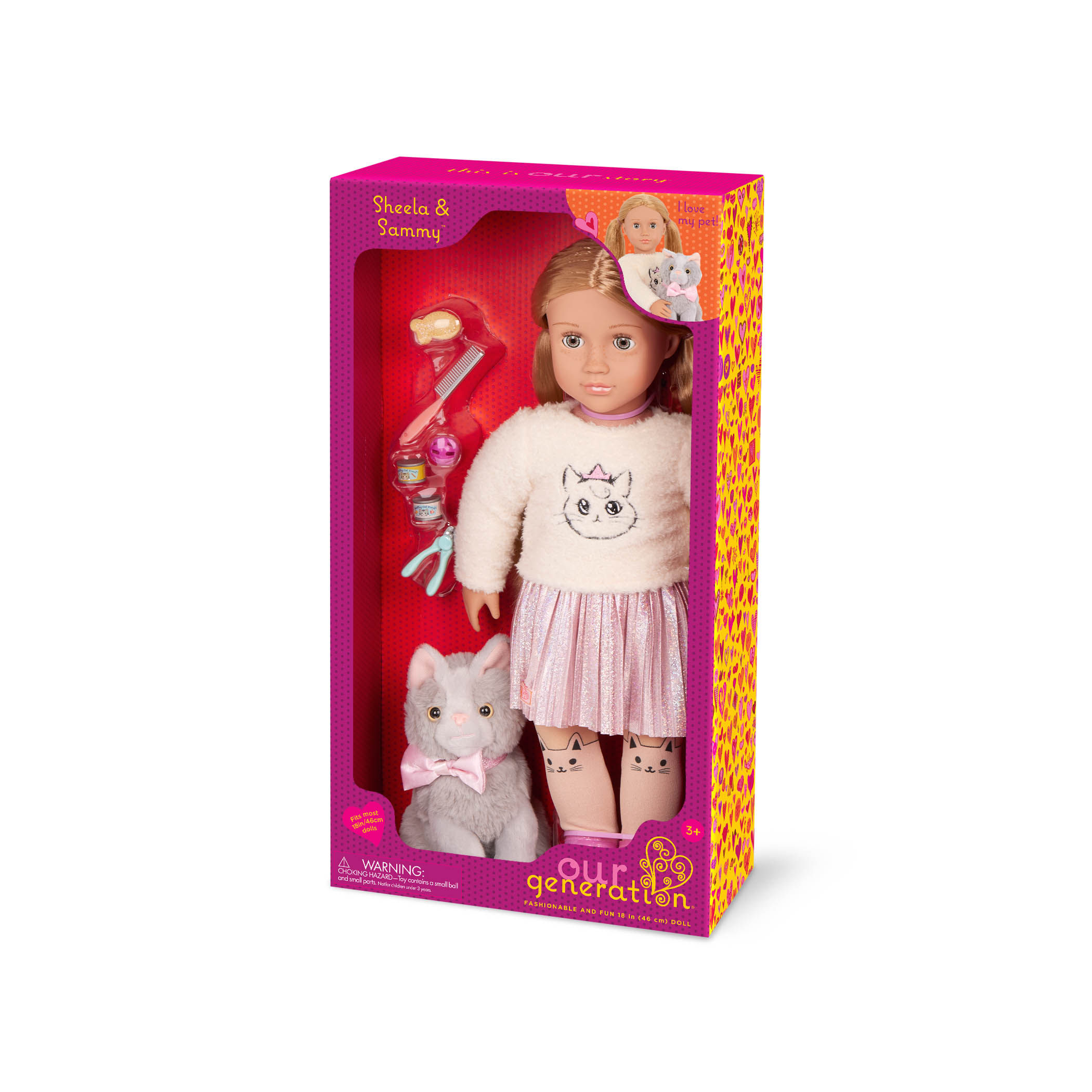 Lalka SHEELA 46 cm z kotkiem – Sheela & Sammy | 18-inch Doll & Pet Cat Plush Set