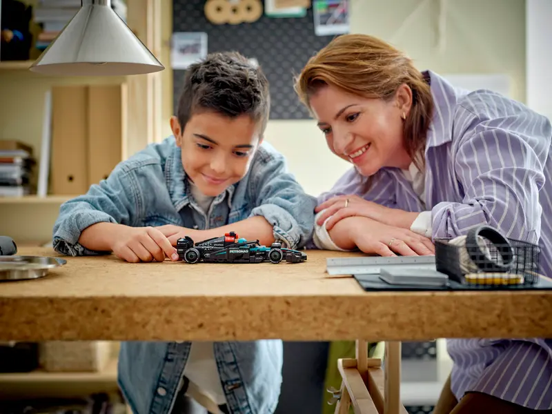 - Bolid zespołu F1® Mercedes-AMG PETRONAS dla dzieci — LEGO® Speed Champions Bolid F1® Mercedes-AMG W15 umożliwia 10-latkom i starszym dzieciom zbudowanie, zabawę w wyścigi i eksponowanie modelu na półce
