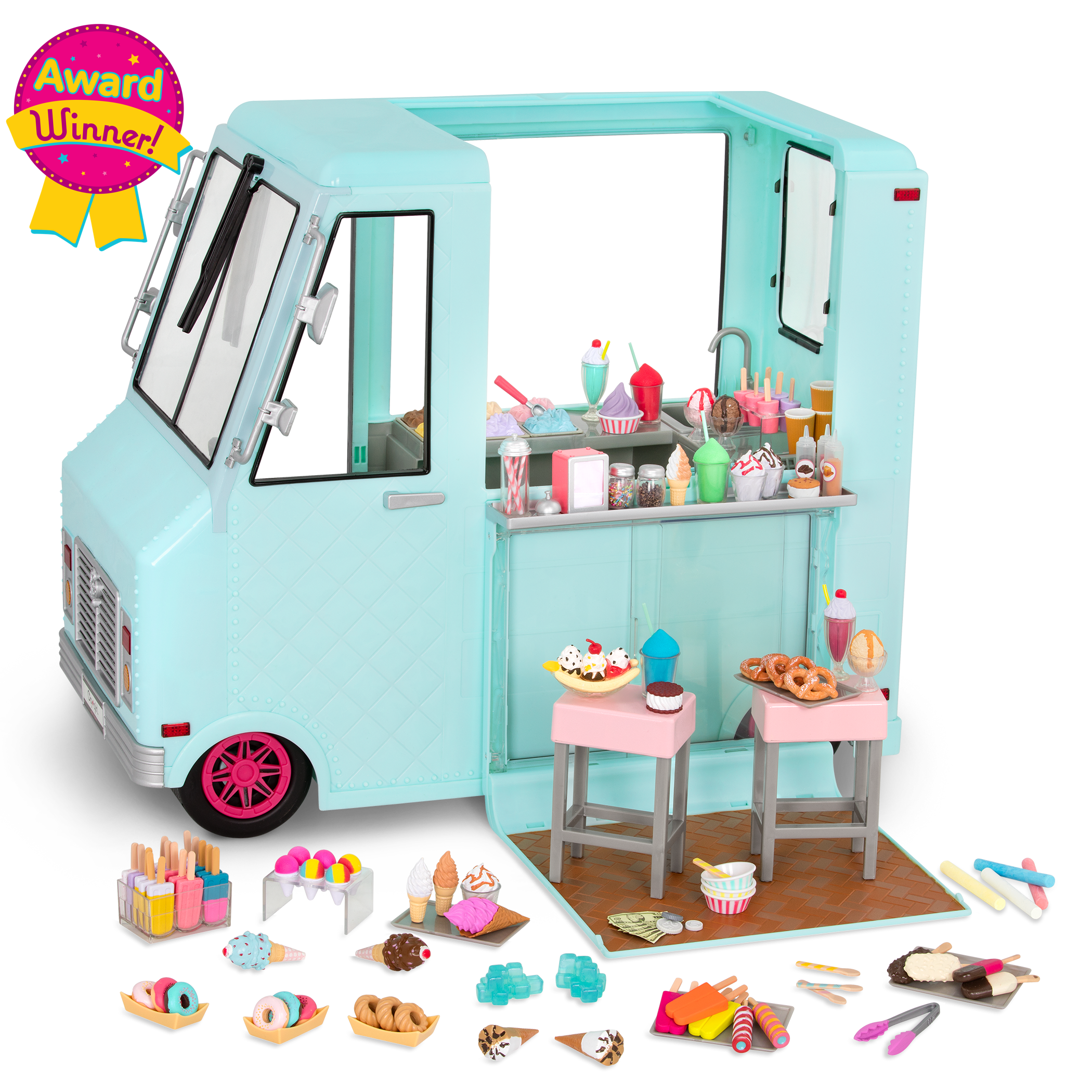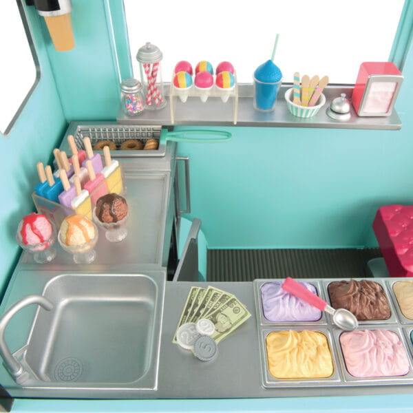 SWEET STOP ICE CREAM TRUCK – Lodziarnia na kółkach z pełnym wyposażeniem – MIĘTOWA wersja z serii Our Generation