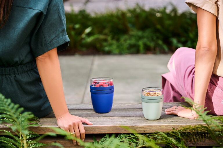 Lunchbox o modułowej konstrukcji zawiera dwa oddzielne pojemniki o pojemności 300 ml i 120 ml. Powoli zabrać ze sobą, a potem połączyć jogurt z musli, owsiankę z owocami, warzywa z dipem, czy makaron z sosem i zjeść pełnowartościowy posiłek poza domem.