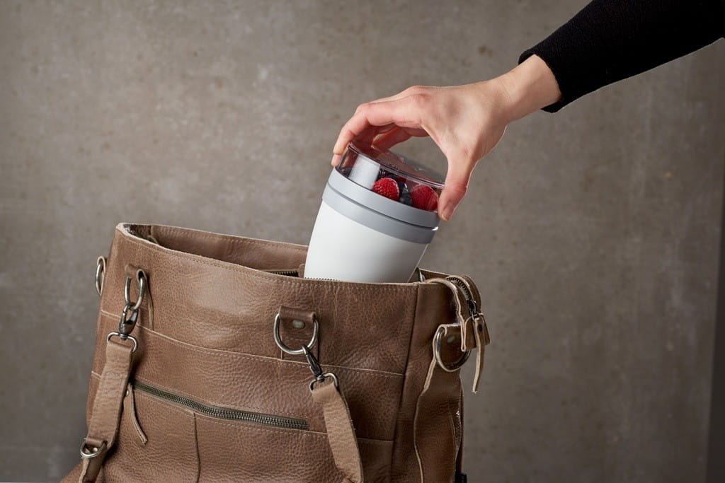 Lunchbox o modułowej konstrukcji zawiera dwa oddzielne pojemniki o pojemności 500 ml i 200 ml. Powoli zabrać ze sobą, a potem połączyć jogurt z musli, sałatkę z dressingiem, owsiankę z owocami, czy makaron z warzywami i mięsem i zjeść pełnowartościowy posiłek poza domem.