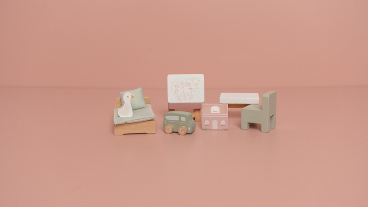 Zestaw do domku pokój dziecięcy od Little Dutch. Stwórz przytulny pokój dziecięcy w domku dla lalek Little Dutch z tym zestawem uroczych detali! Wyposaż swój domek dla lalek w przytulne łóżko dziecięce z mięciutką pościelą, stolik z krzesełkiem, sztalugę i zabawki. Dzięki temu zestawowi każdy mały mieszkaniec domku z pewnością będzie szczęśliwy. Figurki wykonane są z drewna z certyfikatem FSC i pokryte farbami na bazie wody. Wszystkie zestawy do domku Little Dutch można łączyć ze sobą - skomponuj swój wymarzony domek dla lalek razem z Little Dutch.