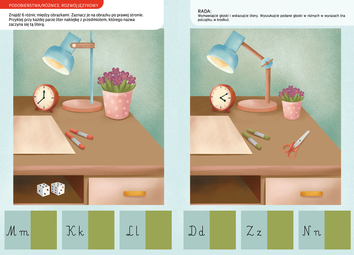 Do elementarzy dołączone są naklejki oraz dwie karty z elementami do wycinania.