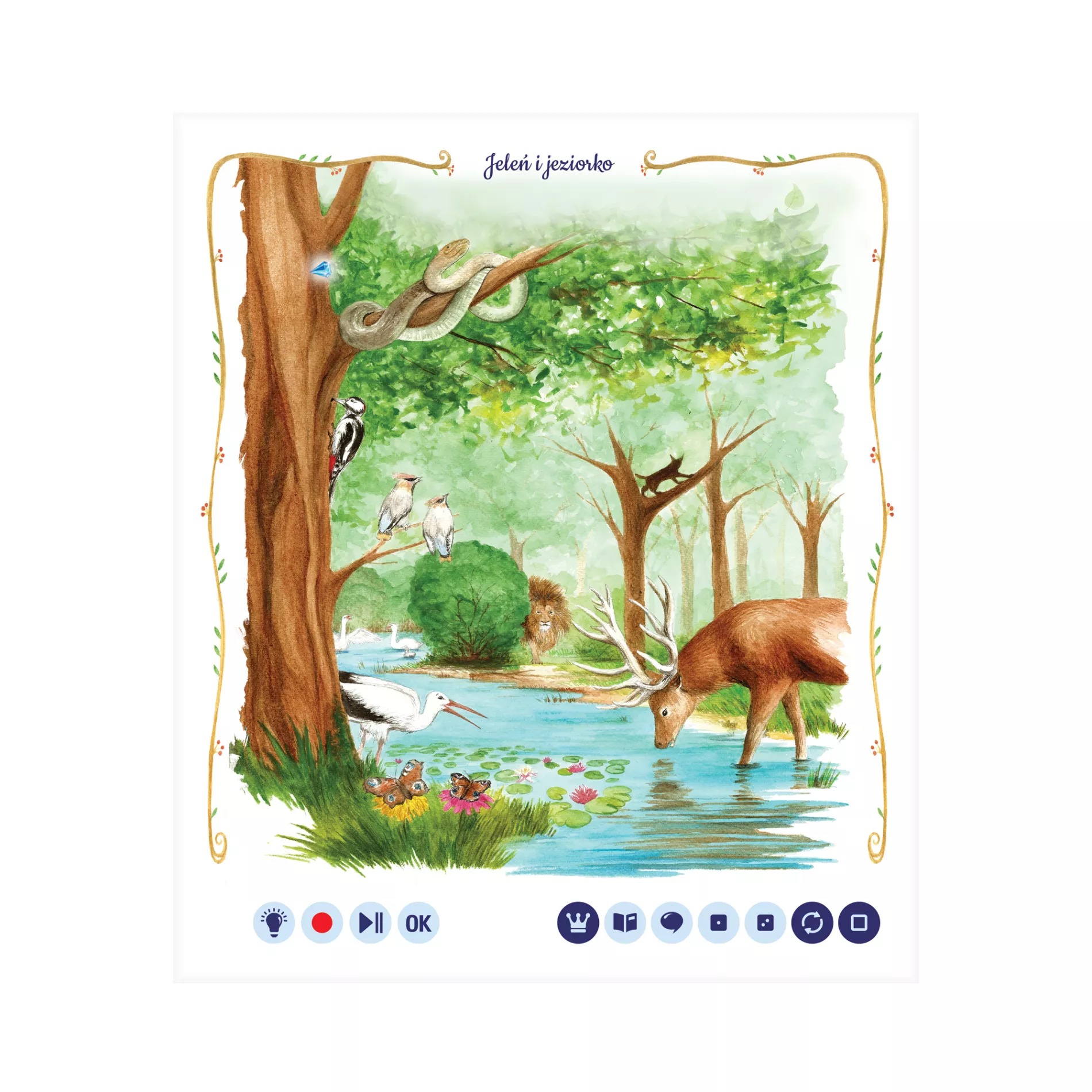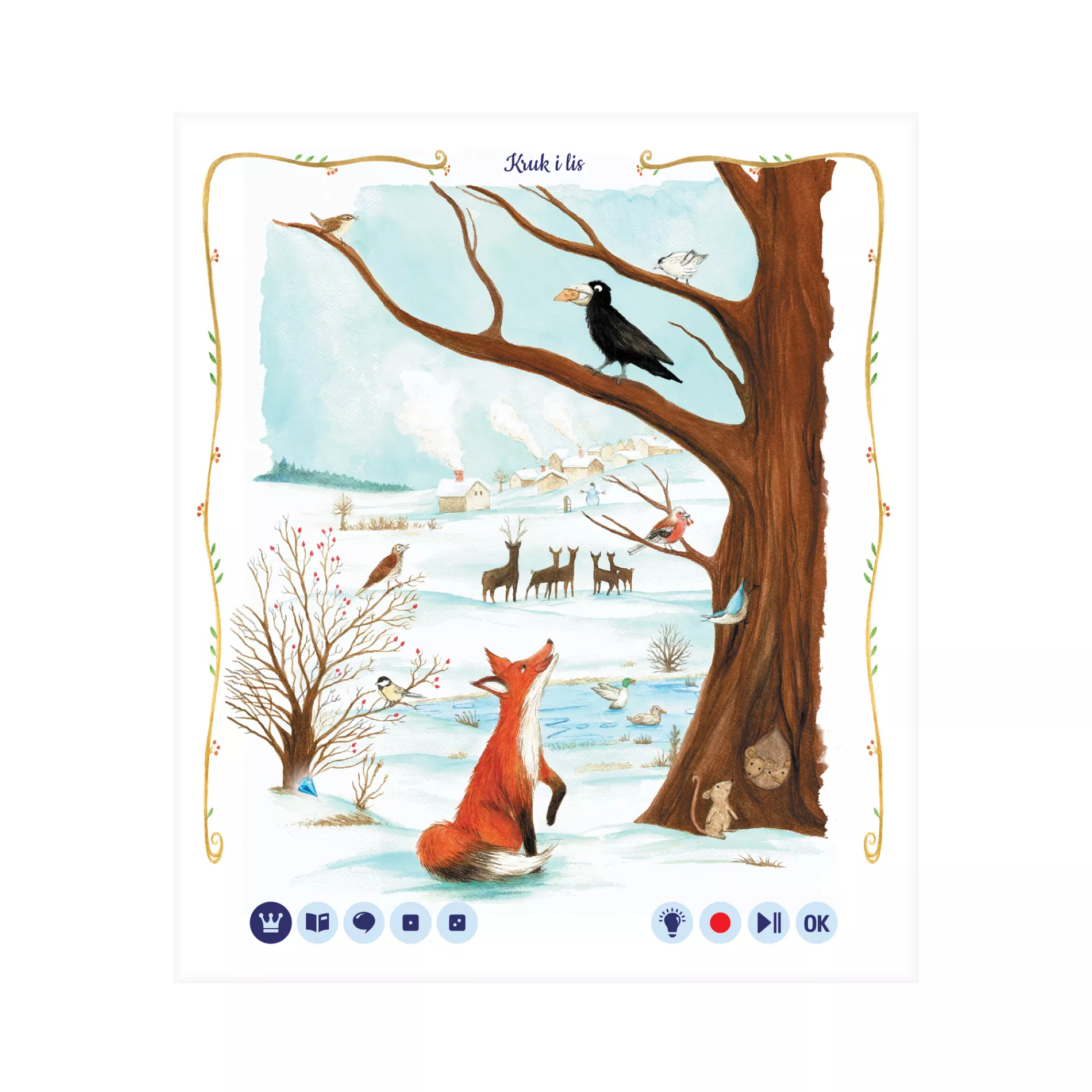 Bajki ciekawią dzieci i dorosłych. Niektóre są zabawne, a inne stają się zwierciadłem ludzkich cech. Chcesz wiedzieć, dlaczego mówi się „przebiegły jak lis” lub „pracowity jak mrówka”? Chodź z nami do świata cwanych, tchórzliwych lub odważnych zwierząt. W książce znajdziesz 14 bajek Ezopa i La Fontaine'a. Przy każdej wyszczególniony jest morał, aby lepiej zapamiętać przesłanie płynące z historii. Swoje przemyślenia na temat usłyszanych opowieści możesz uwiecznić na nagraniu audio, a w ćwiczeniu spostrzegawczości pomogą łatwe quizy.