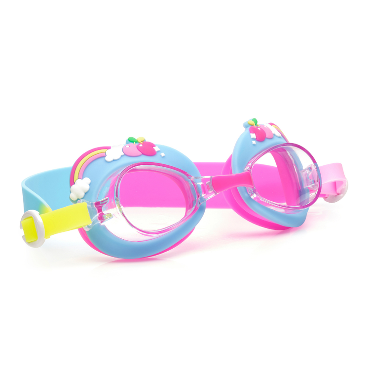 Okularki z owocami oraz tęczą na silikonowym oprawkach to świetny wybór do wodnej zabawy. Wszystkie elementy są przyjemne w dotyku, miękkie, silikonowe.