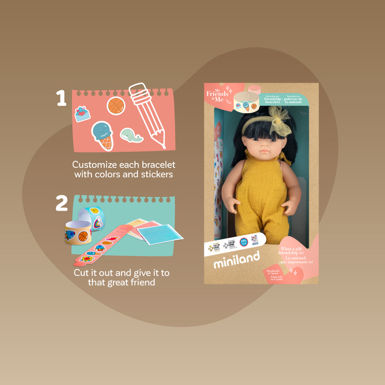 Odkryj magię przyjaźni z 38-centymetrową lalką Azjatką My Friends & Me z nowej kolekcji lalek Miniland. Ta urocza lalka dla dziewczynek i chłopców nie tylko promuje wartość przyjaźni, ale także radość dzielenia się wyjątkowymi chwilami z innymi dziećmi od najmłodszych lat.