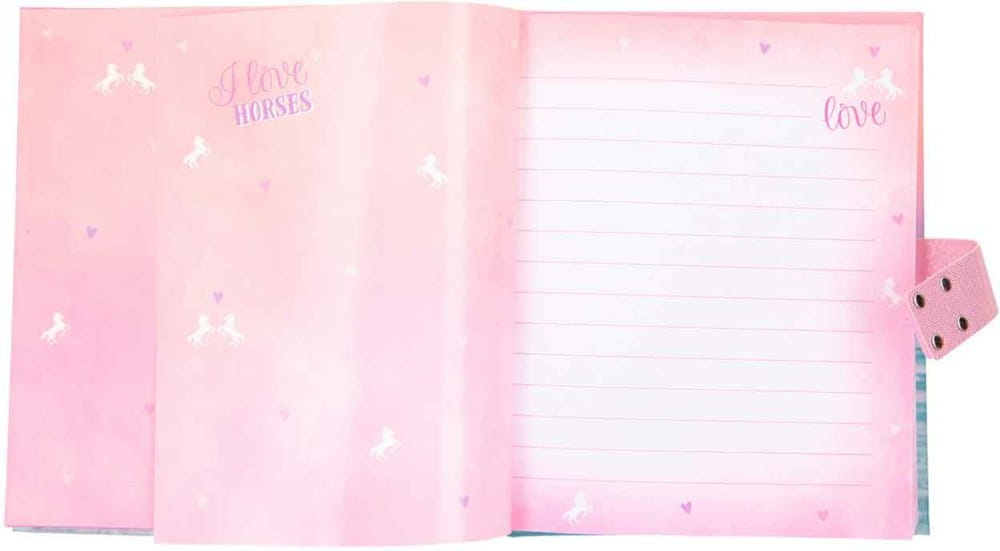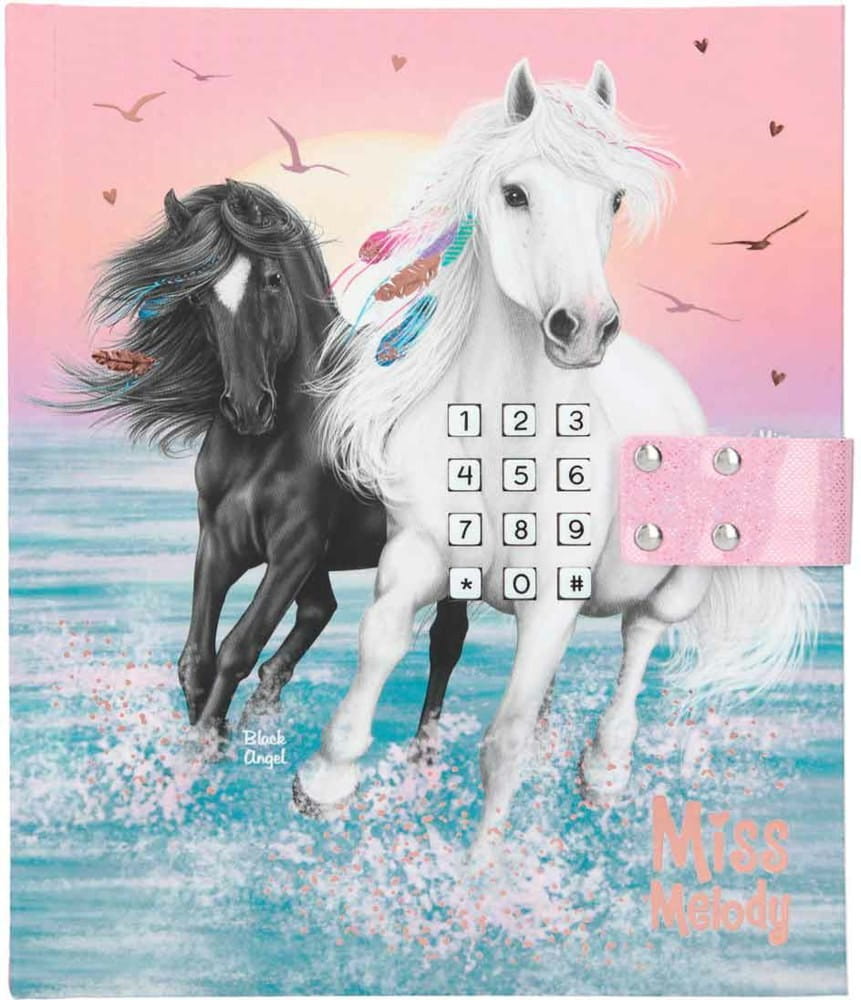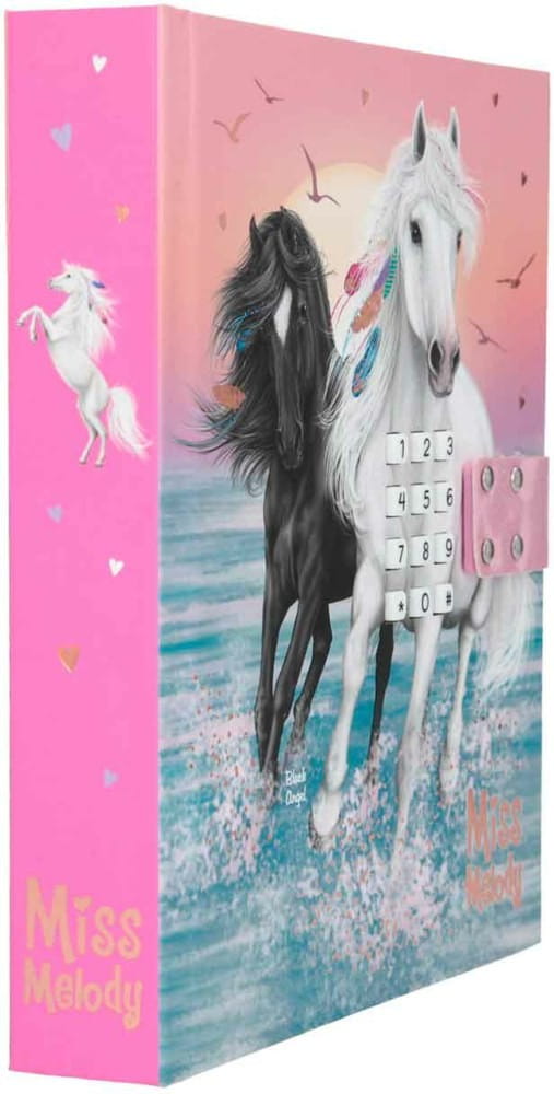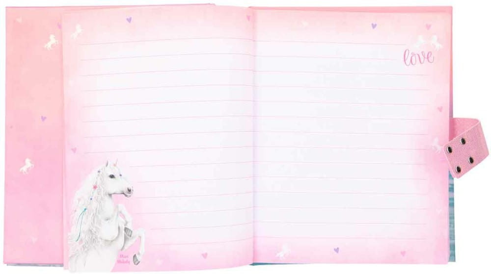 Pamiętnik liczy 100 różowych strony w linie, udekorowanych gwiazdkami i miniaturką wspinających się koni. Tutaj dziewczynka może zapisywać swoje sekreciki, wspomnienia oraz wykonywać szkice i rysunki. Pamiętnik z twarda okładką posiada błyszczący napis Miss Melody.