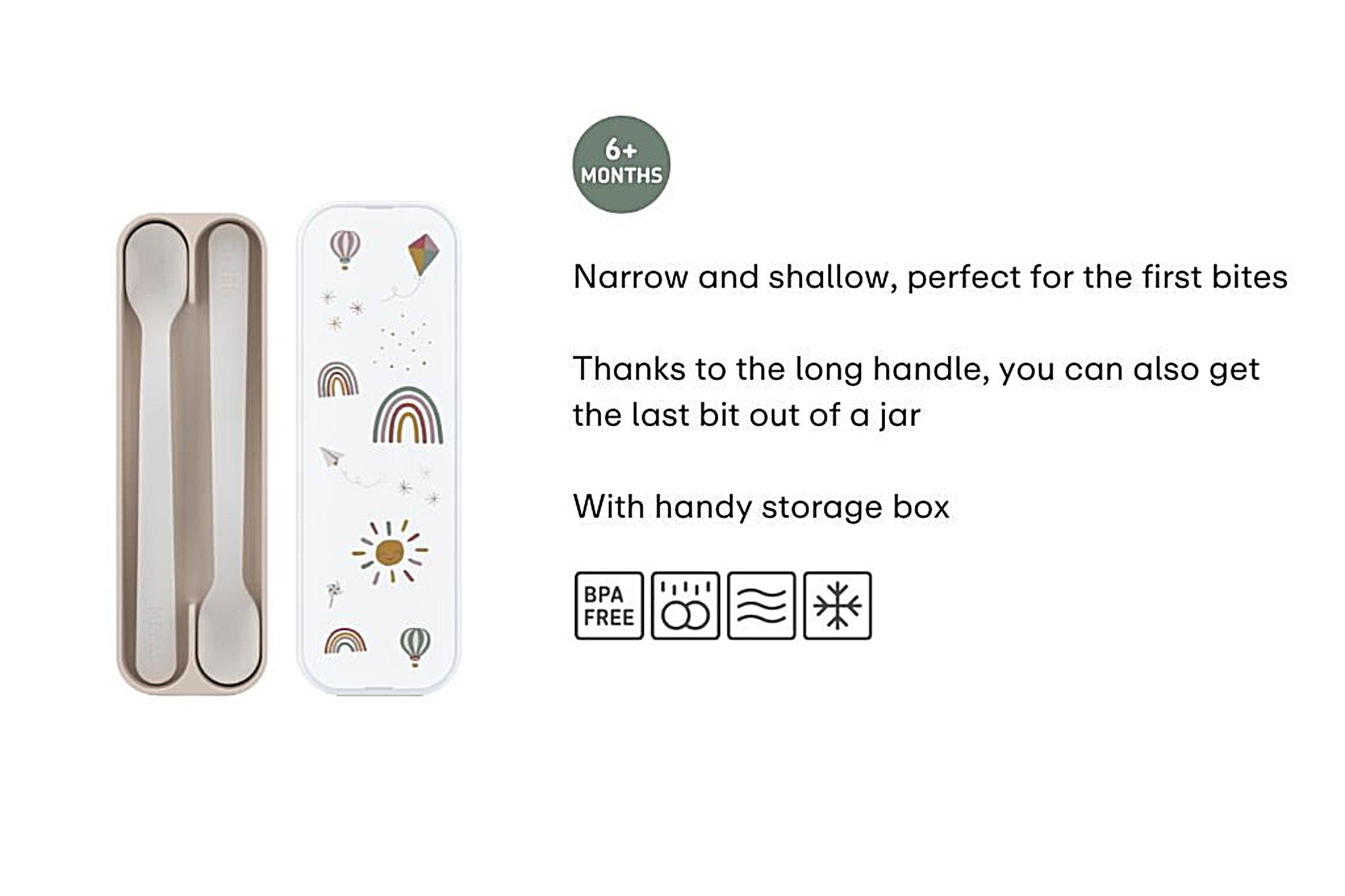 Łyżeczki do karmienia dzieci Mepal Mio sprzedawane są w estetycznym etui, które umożliwia ich wygodne przenoszenie. Dzięki temu w każdym miejscu można zaserwować Maluchowi Jego ulubiony posiłek! Doskonale sprawdzą się więc i w domu, i w terenie, bez problemu mieszcząc się do torebki każdej Mamy, bez ryzyka zabrudzenia. Wykonane są z mocnego, trwałego plastiku, wolnego od BPA i są bardzo proste do utrzymania w czystości, zapewniając higienę i bezpieczeństwo. Łyżeczki do karmienia Mepal Mio sprawią, że każdy posiłek będzie przyjemnością zarówno dla Dziecka, jak i Rodzica.