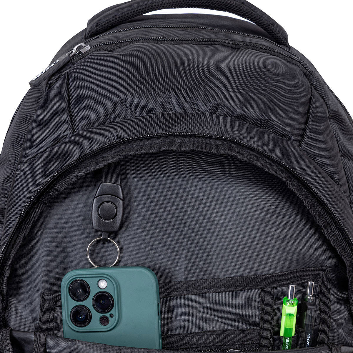 Wyposażony w aż 3 pojemne komory, 2 zewnętrzne elastyczne kieszenie oraz funkcjonalny organizer z brelokiem na klucze, plecak ułatwia przechowywanie podręczników, zeszytów, przyborów szkolnych i akcesoriów osobistych. Dodatkowo, logowane uchwyty suwaków, podszewka oraz wzmocnione plecy z oddychającej siateczki i klubowe detale nadają mu estetycznego i solidnego charakteru.