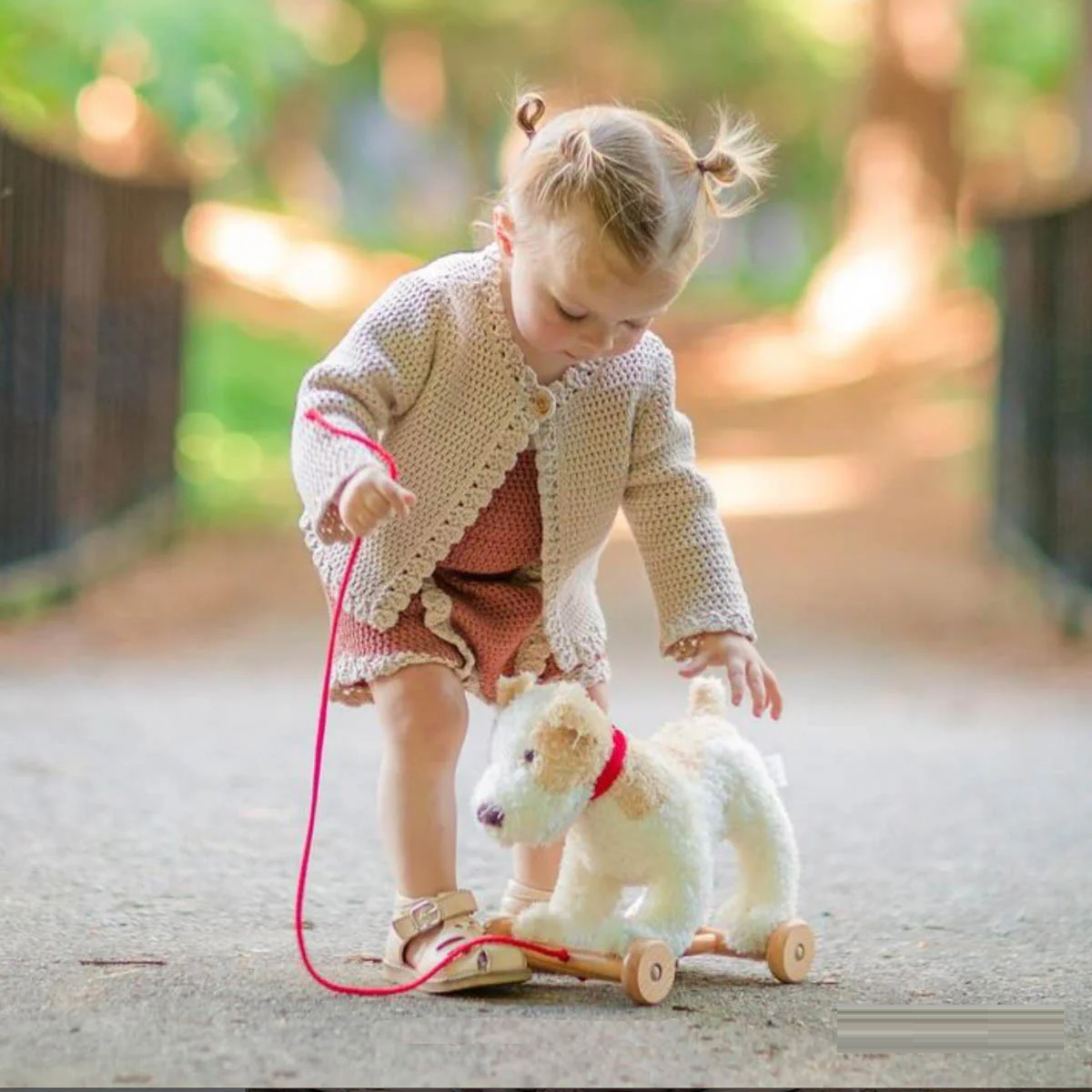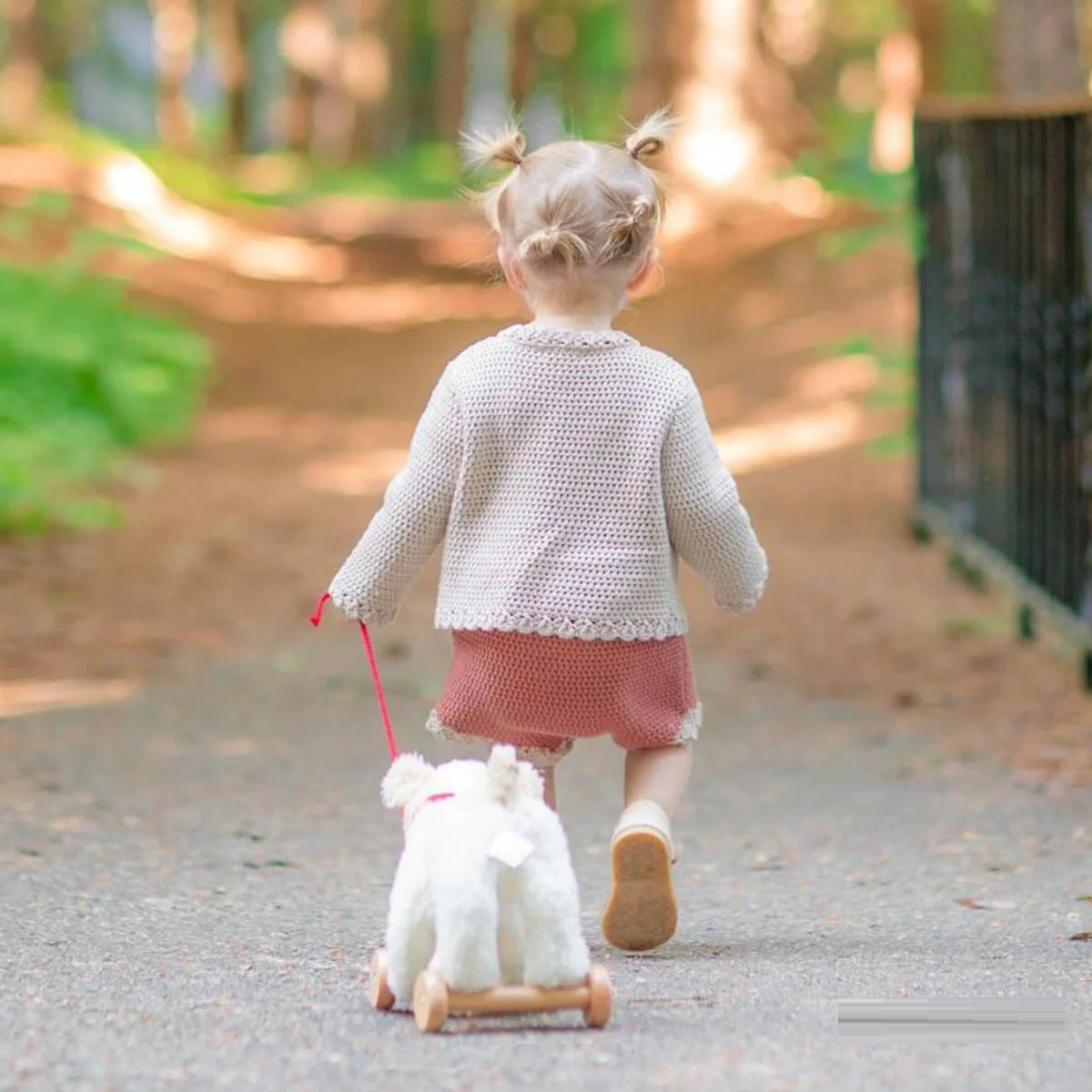 Rozwija motorykę dużą i koordynację ruchową – ciągnięcie pieska i poruszanie się z nim to świetne ćwiczenie.