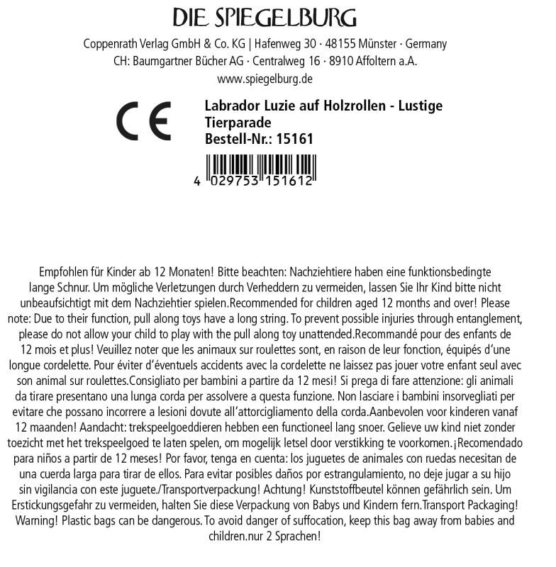 Pluszowy piesek Labrador na kółkach do ciągnięcia za sznurek Spiegelburg