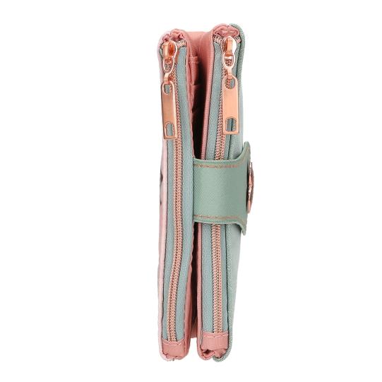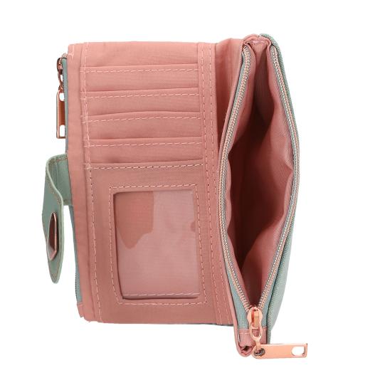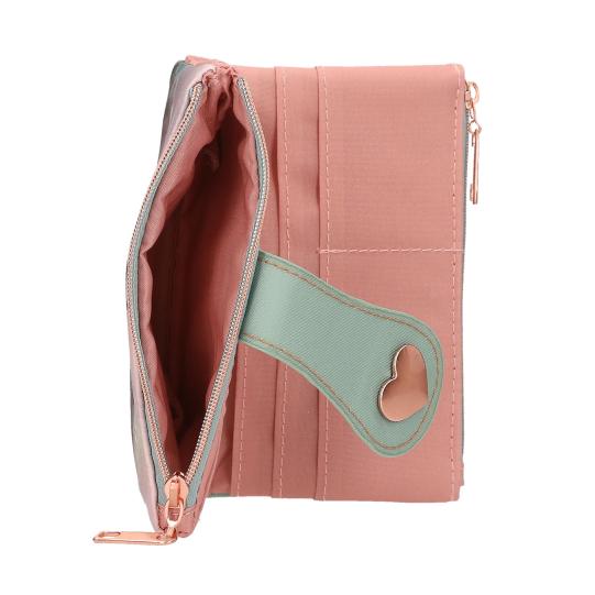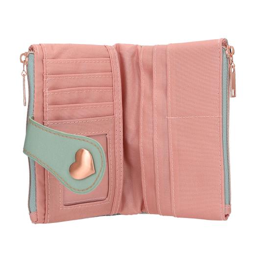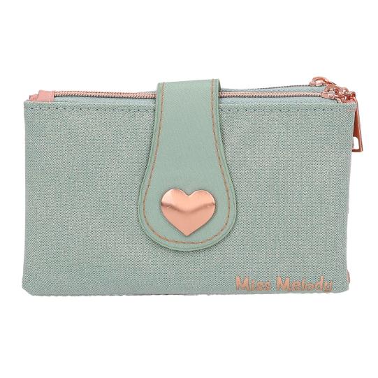 Portfelik z kolekcji Miss Melody Romantic Fields to elegancki i praktyczny dodatek dla dzieci od 6. roku życia. Utrzymany w delikatnych odcieniach szałwiowej zieleni i pudrowego różu, ozdobiony motywem konia na tle porannej łąki, wprowadza spokój i harmonię. Błyszczące wykończenie, zamek w kolorze różowego złota oraz zatrzask w kształcie serca sprawiają, że jest to akcesorium nie tylko funkcjonalne, ale i wyjątkowo estetyczne.