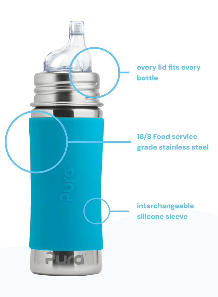 Butelka niekapek Pura Kiki o pojemności 325 ml to idealne rozwiązanie dla dziecka, który przechodzi na picie z ustnika. Tak jak wszystkie produkty z linii Kiki, jest w 100% wolna od plastiku i toksyn, co potwierdzają niezależne badania. Miękki, wentylowany ustnik XL-Sipper™ wykonany z medycznego silikonu zapewnia wygodę i bezpieczeństwo.