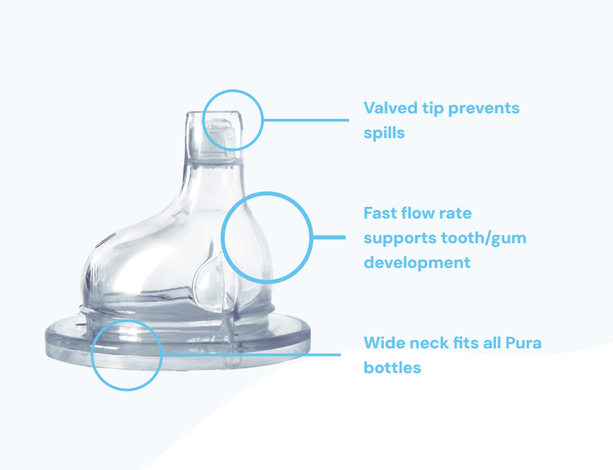 Rośnie razem z dzieckiem: dzięki wymiennym końcówkom butelka może pełnić rolę butelki dla niemowląt, butelki ze słomką czy bidonu sportowego – wystarczy zmienić ustnik.