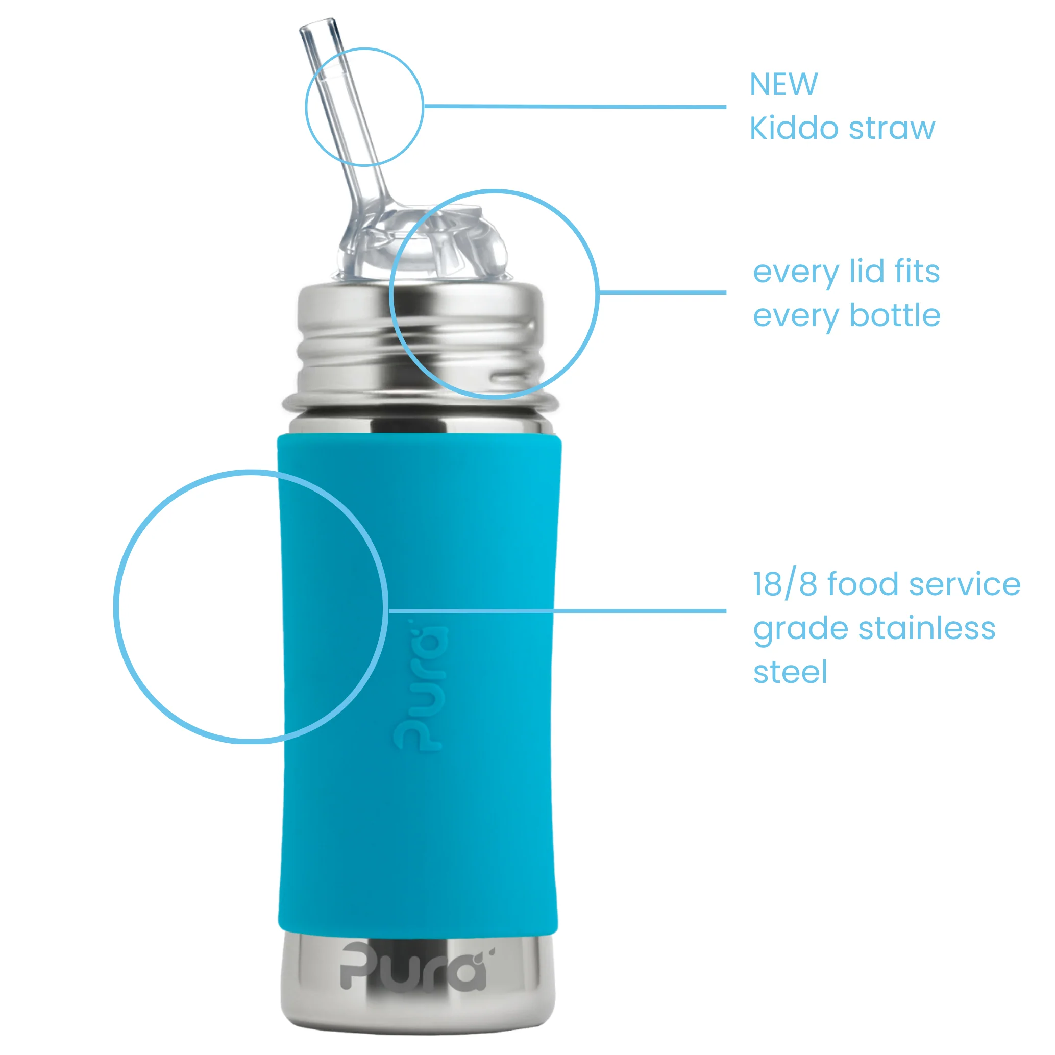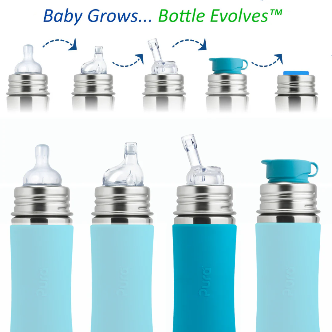 Uniwersalność i oszczędność – opatentowany system Any Bottle… Any Lid™ sprawia, że wszystkie nakładki Pura pasują do wszystkich butelek Pura. Wystarczy wymienić wieczko, aby butelka „rosła” razem z dzieckiem: od butelki do karmienia, przez kubek niekapek i bidon, aż po butelkę sportową.