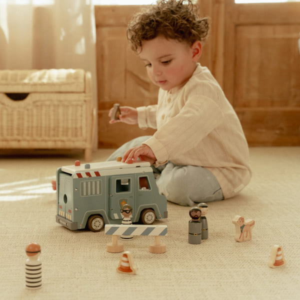 Drewniane auto policyjne Little Dutch – zabawa pełna akcji i przygód!