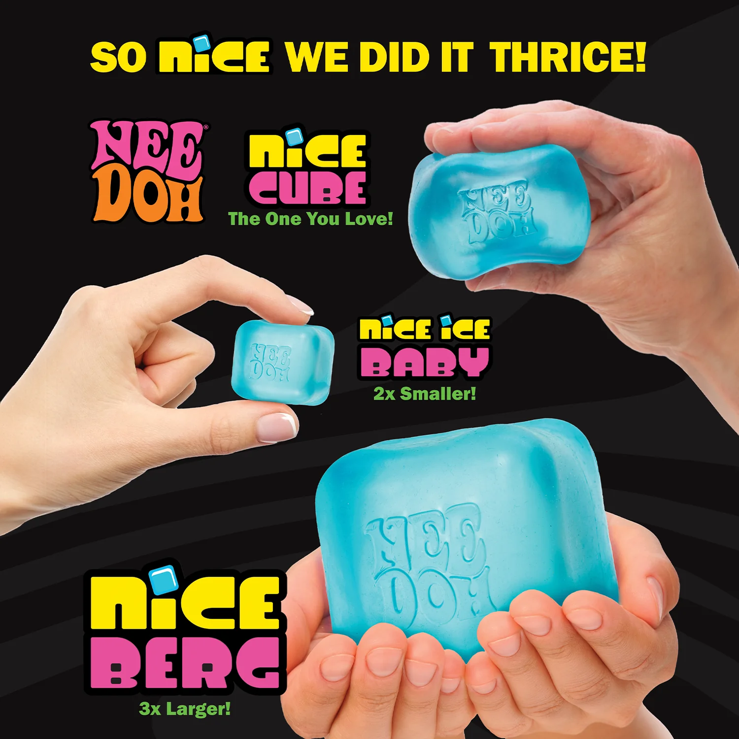Większa i ulepszona wersja bestsellerowej kostki NeeDoh Nice Cube. To miękki, sprężysty sześcian, który można ściskać, zgniatać i rozciągać, a po puszczeniu wraca do swojego idealnego, kwadratowego kształtu.