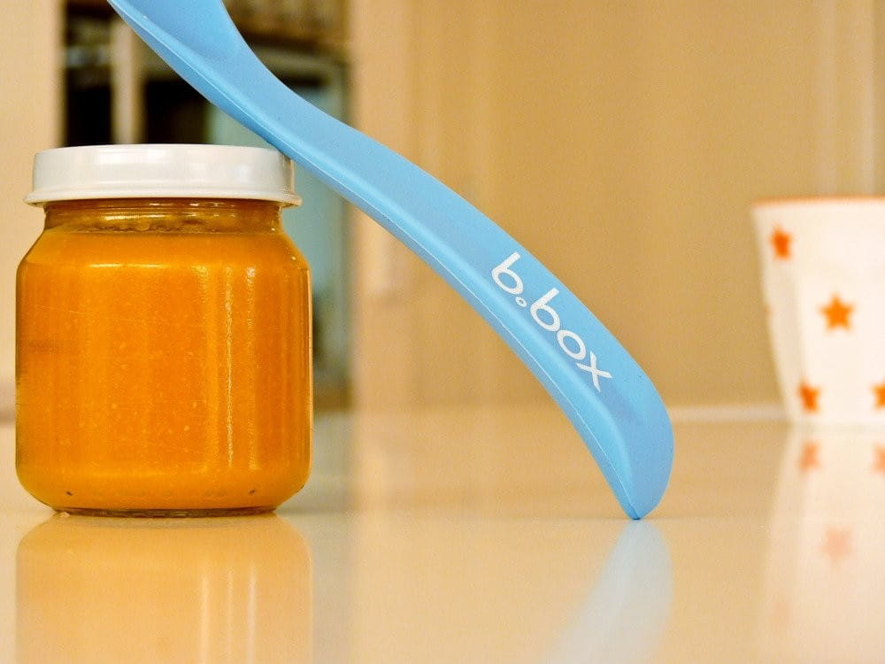 Zestaw dwóch silikonowych łyżeczka b.box Baby spoon do nauki samodzielnego jedzenia oraz karmienia niemowląt i dzieci