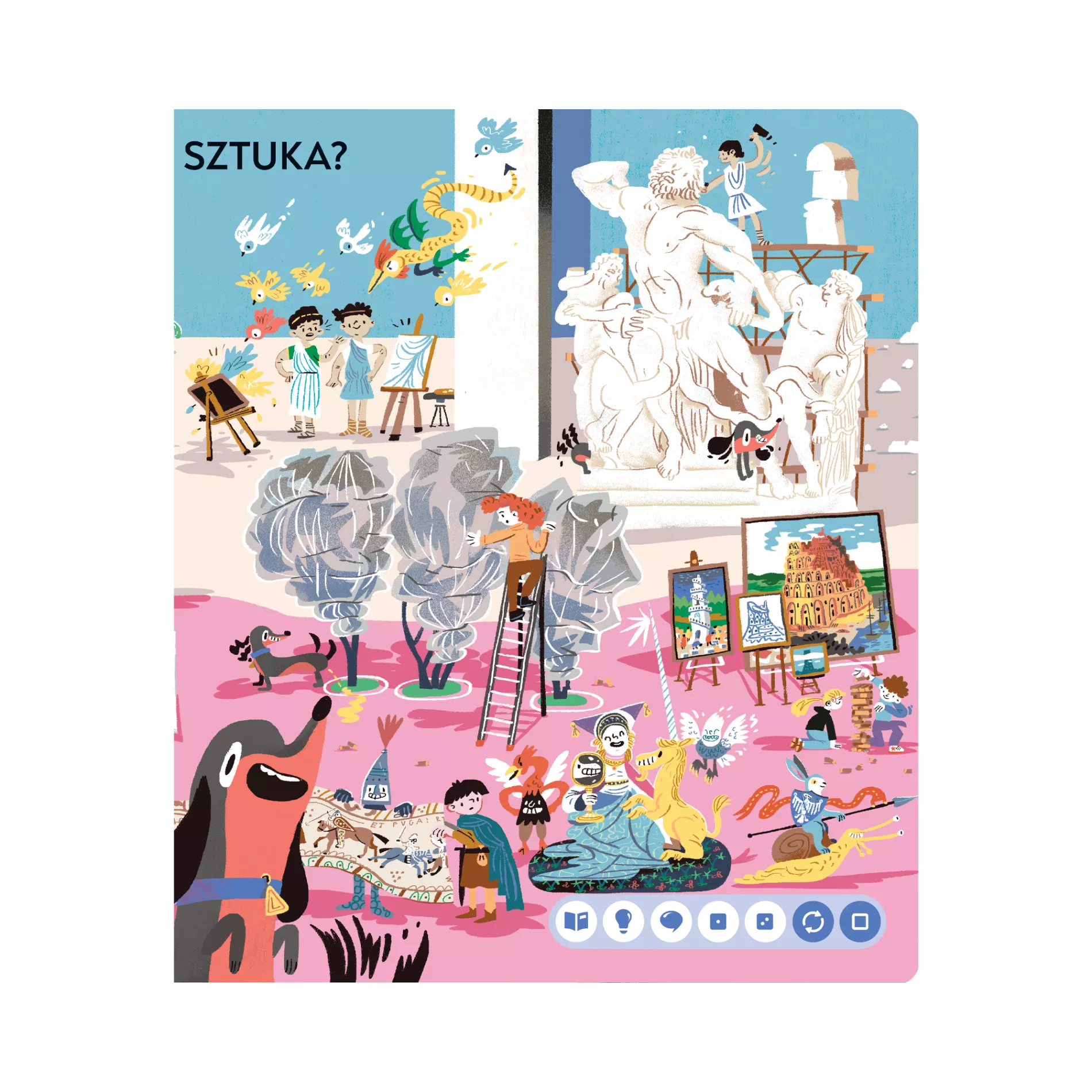 „Sztukę” napisała Katarzyna Witt, edukatorka i animatorka kultury, a autorem pełnych humoru ilustracji jest Przemek Liput.