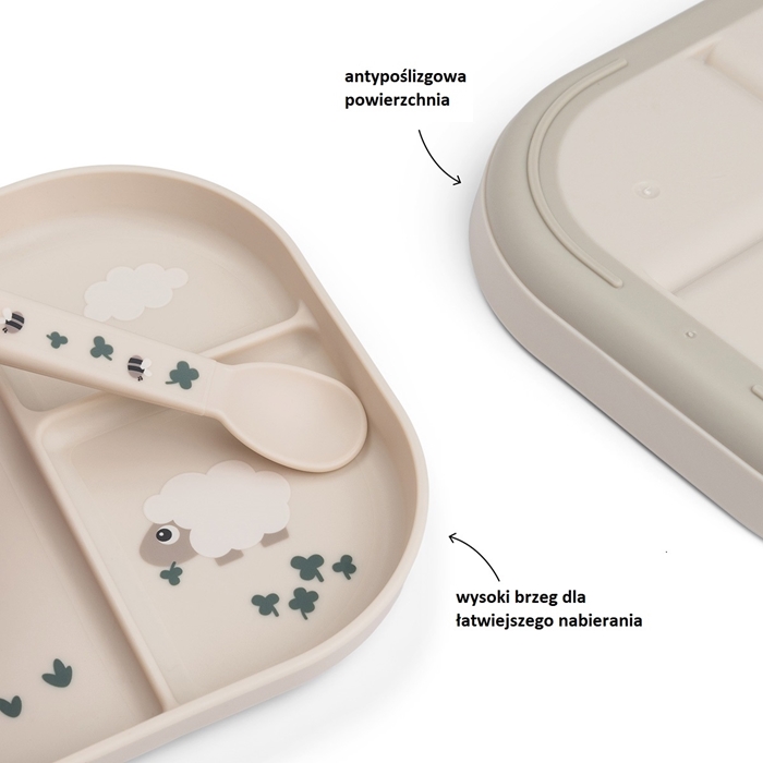 Wysokie krawędzie talerza ułatwią dziecku nabieranie jedzenia, a praktyczna antypoślizgowa podstawa gwarantuje, że talerz pozostanie na swoim miejscu. Talerz z przegródkami jest przeznaczony do codziennego użytku z dziećmi i można go myć w zmywarce oraz używać w kuchence mikrofalowej.