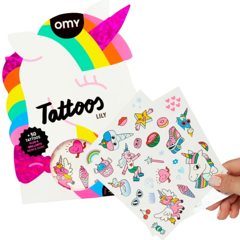 Tatuaże jednorożce kolorowe dla dziewczynki Lily omy