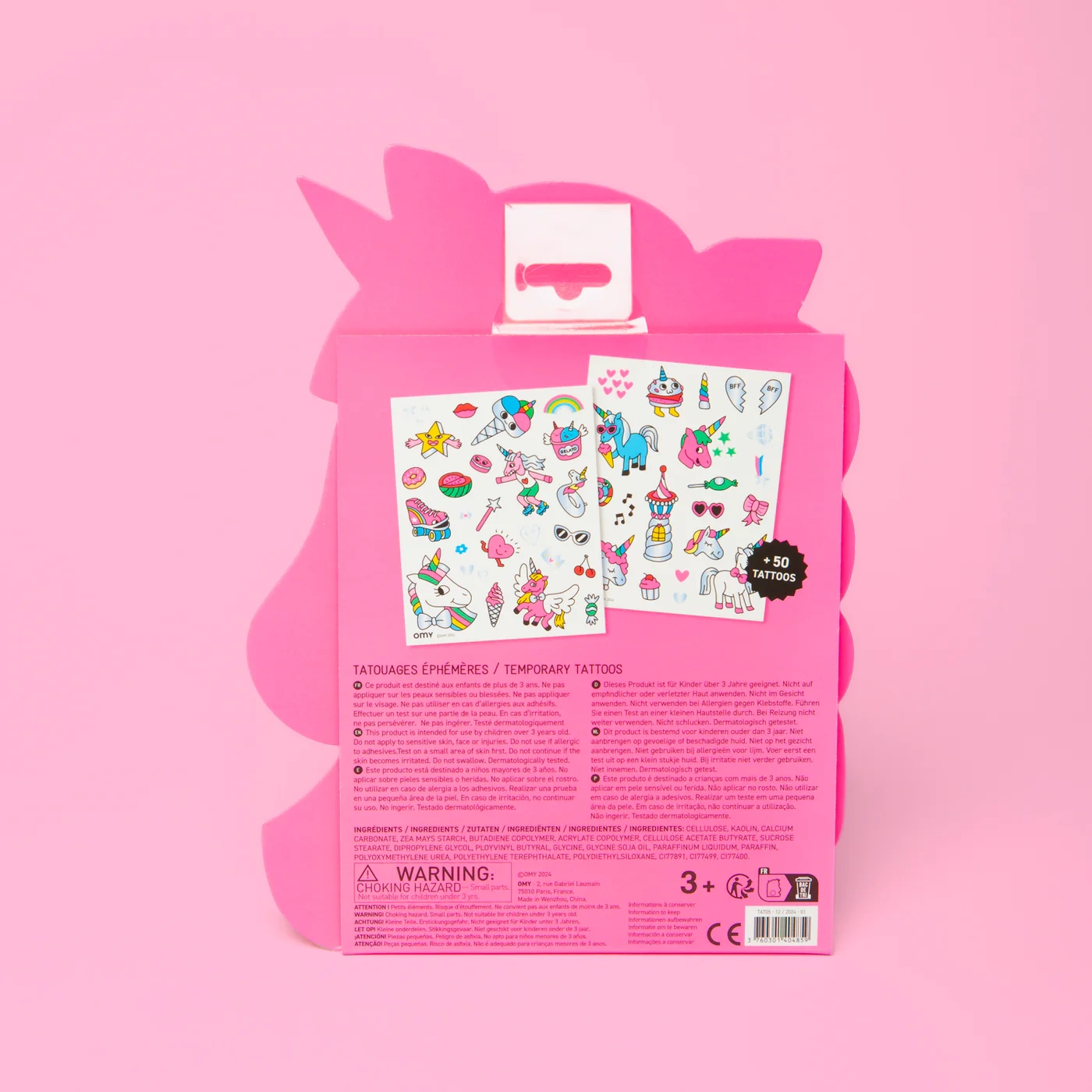 Ten wyjątkowy zestaw zawiera 50 fluorescencyjnych i złotych tatuaży. Tęcze, gwiazdki, serduszka i oczywiście czarujące jednorożce – wszystko, czego potrzeba, by rozświetlić każdy dzień!