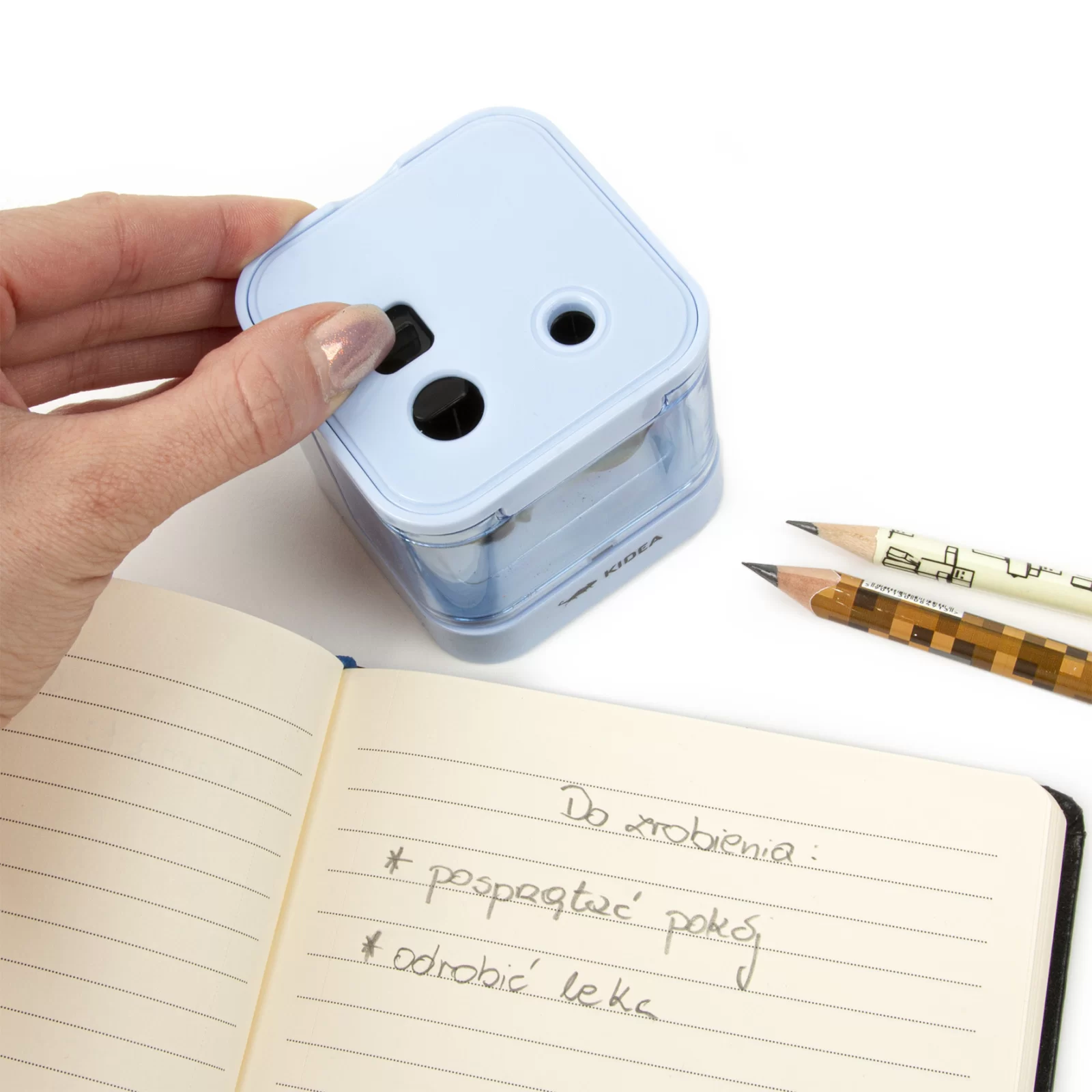 Elektryczna temperówka podwójna KIDEA to idealne rozwiązanie do domu, szkoły czy biura. Dzięki dwóm otworom umożliwia precyzyjne ostrzenie przyborów o różnych grubościach – w zaledwie kilka sekund.