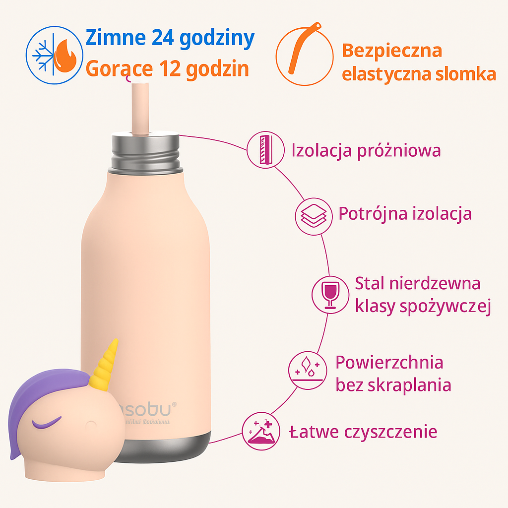 Termos Jednorożec butelka termiczna ze słomką Bestie Asobu 460 ml
