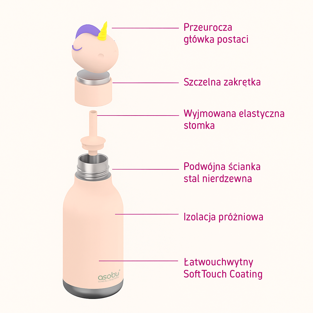 Asobu Bestie to butelka termiczna, która łączy wygodę użytkowania z dopracowanym designem. Powstała z myślą o dzieciach, ale przypadnie do gustu także dorosłym, którzy cenią funkcjonalne i estetyczne rozwiązania. Model z motywem jednorożca ma miękką w dotyku pokrywkę z uroczym nadrukiem i poręczną formę, którą można zabrać wszędzie – do szkoły, pracy czy w podróż.