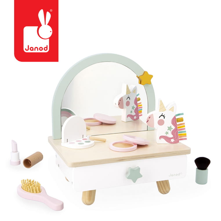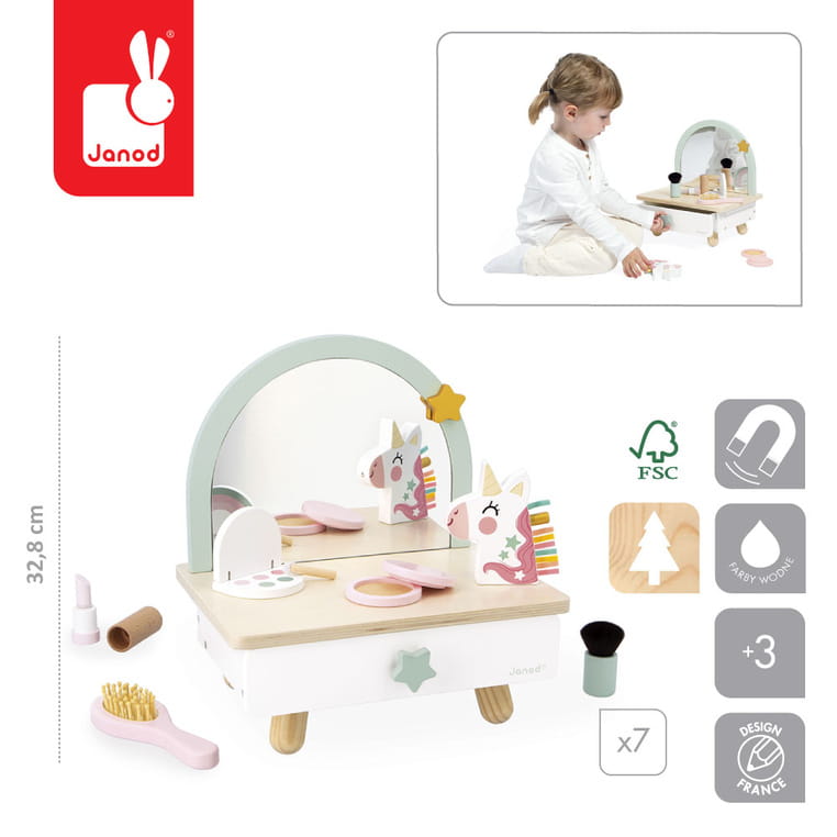 Toaletka dla dziewczynki drewniana z akcesoriami Jednorożec Janod