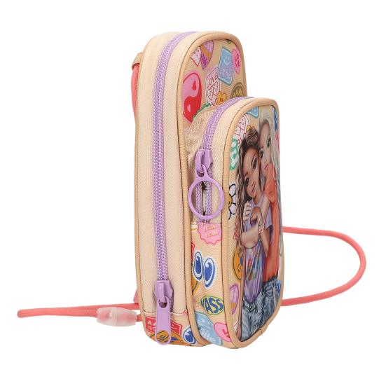 Stylowa i praktyczna – idealna na każdą okazję! Torebka na smartfon TOPModel GIRL POWER to świetny wybór dla młodych miłośniczek mody, które chcą mieć swój telefon i drobiazgi zawsze pod ręką. Beżowo-koralowo-liliowa kolorystyka, modny nadruk z dwoma modelkami na przedniej kieszeni oraz kolorowe motywy "batch" przyciągają wzrok i dodają charakteru.