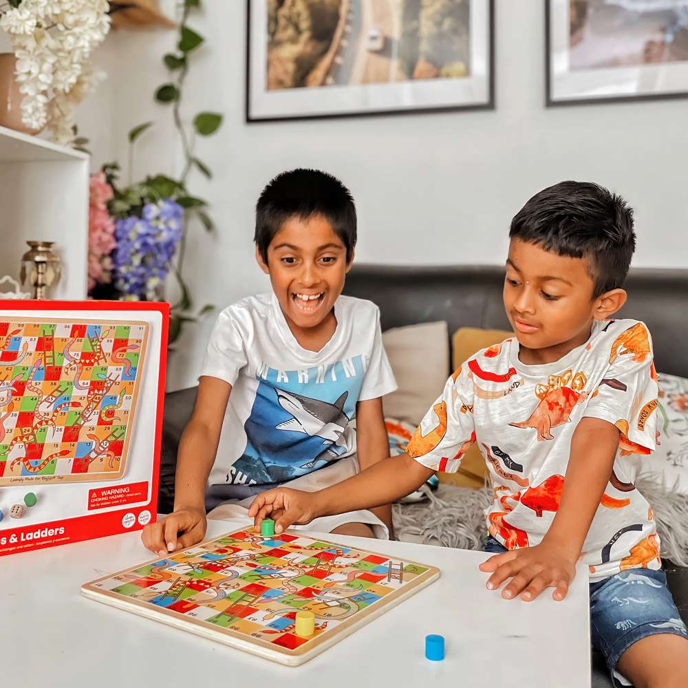 Węże i Drabiny od Bigjigs Toys to pięknie wykonana, drewniana wersja jednej z najstarszych i najbardziej lubianych gier planszowych. To doskonała propozycja na wspólne popołudnia z rodziną, zabawę z rodzeństwem lub pierwsze wprowadzenie dziecka w świat gier planszowych.