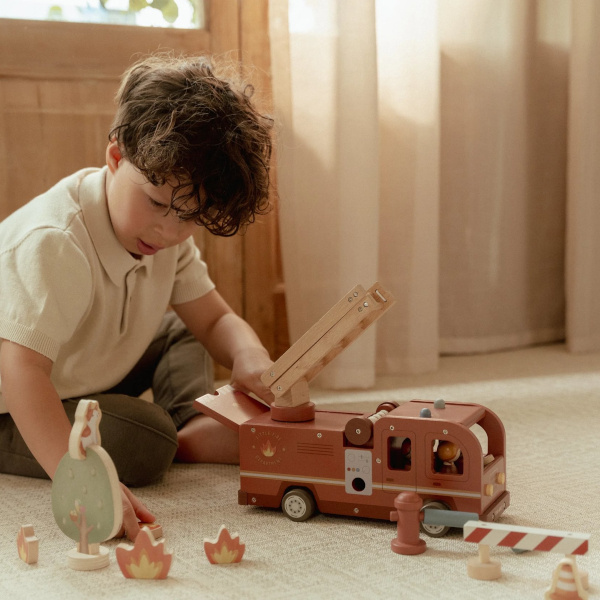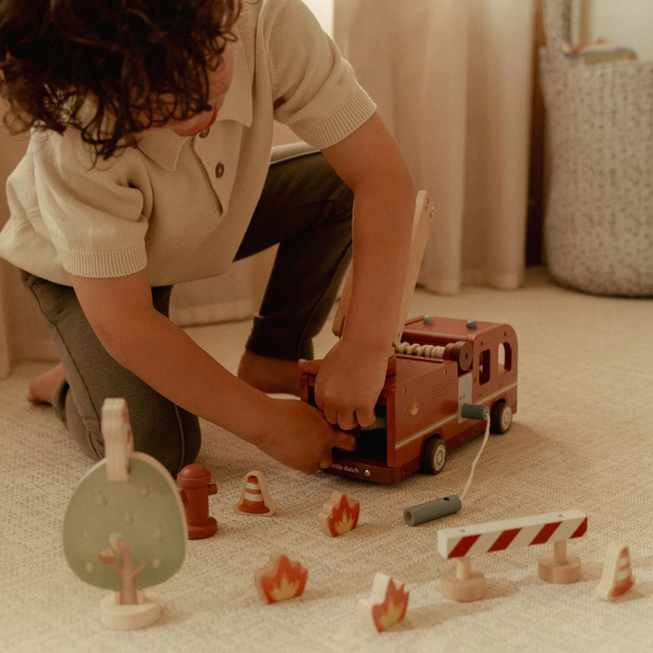 Plac zabaw w pokoju – połącz wóz strażacki z innymi pojazdami Little Dutch, tworząc całe miasteczko.