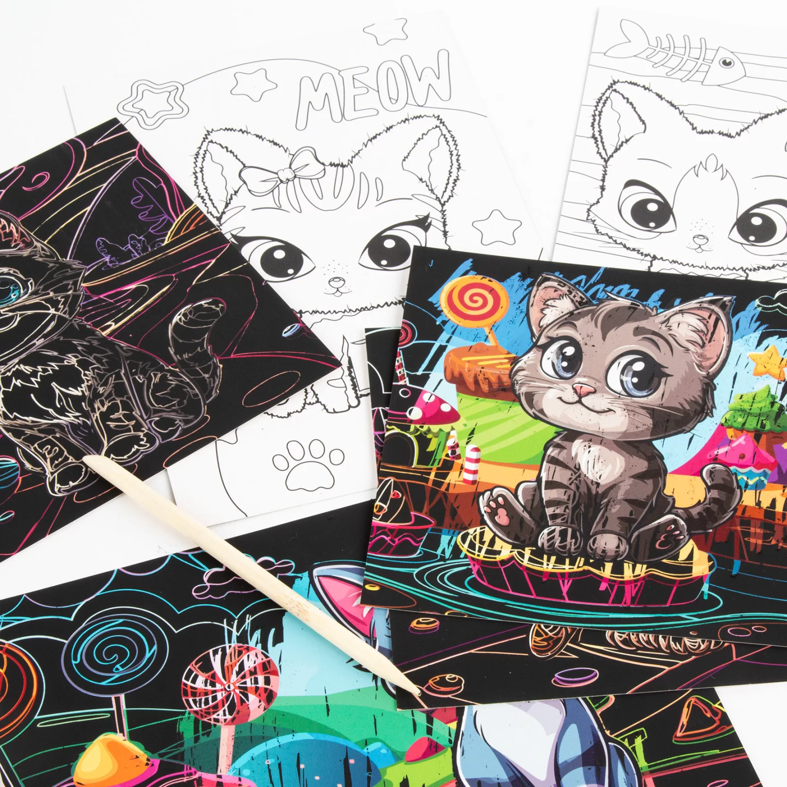 Wydrapywanki kolorowanki 6 arkuszy 2w1 Kotki Kidea