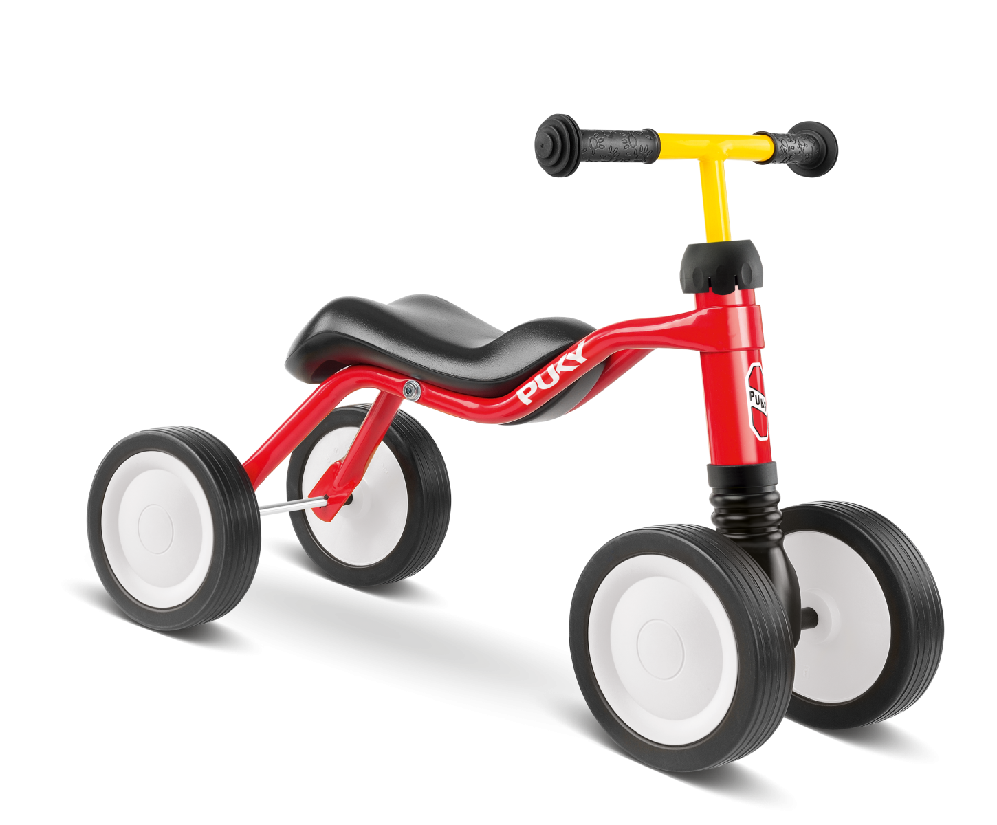 - Ogranicznik skrętu, pojazdy z serii "My first PUKY" mają ograniczenie kąta skrętu kół, ponieważ pojazd powinien być stabilny dla maluchów zaczynających swoją przygodę z rowerkami. Wzmacnia to, szczególnie dla początkujących, zaufanie podczas pierwszych prób jazdy. Ponieważ ze względu na konstrukcję nie można tu osiągnąć wyższych prędkości, takie ograniczenie nie stanowi żadnego ryzyka obrażeń w przypadku upadku.
