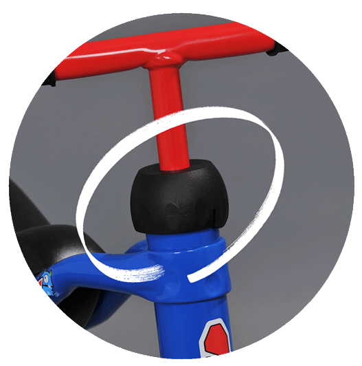 - Ogranicznik skrętu, pojazdy z serii "My first PUKY" mają ograniczenie kąta skrętu kół, ponieważ pojazd powinien być stabilny dla maluchów zaczynających swoją przygodę z rowerkami. Wzmacnia to, szczególnie dla początkujących, zaufanie podczas pierwszych prób jazdy. Ponieważ ze względu na konstrukcję nie można tu osiągnąć wyższych prędkości, takie ograniczenie nie stanowi żadnego ryzyka obrażeń w przypadku upadku.