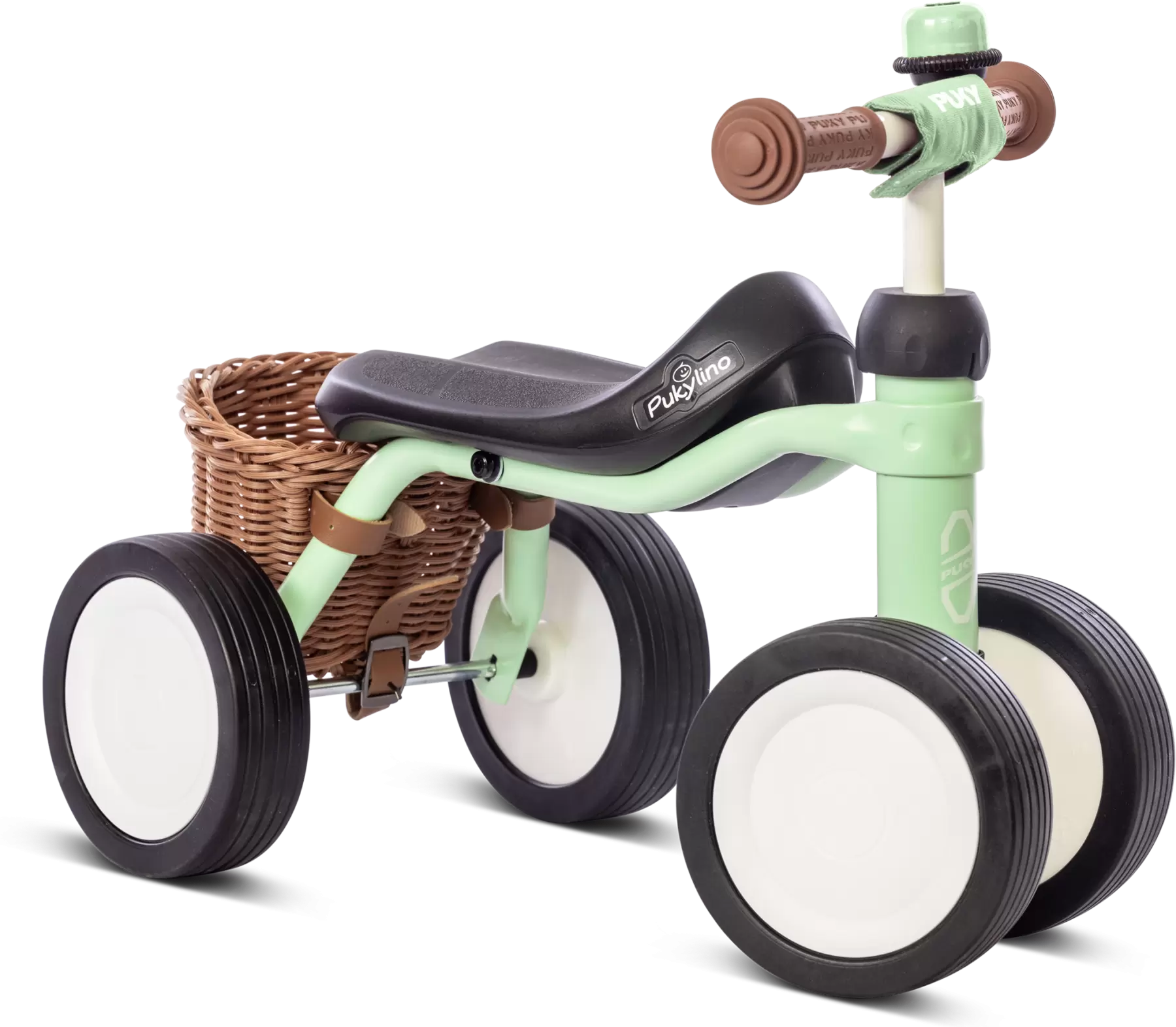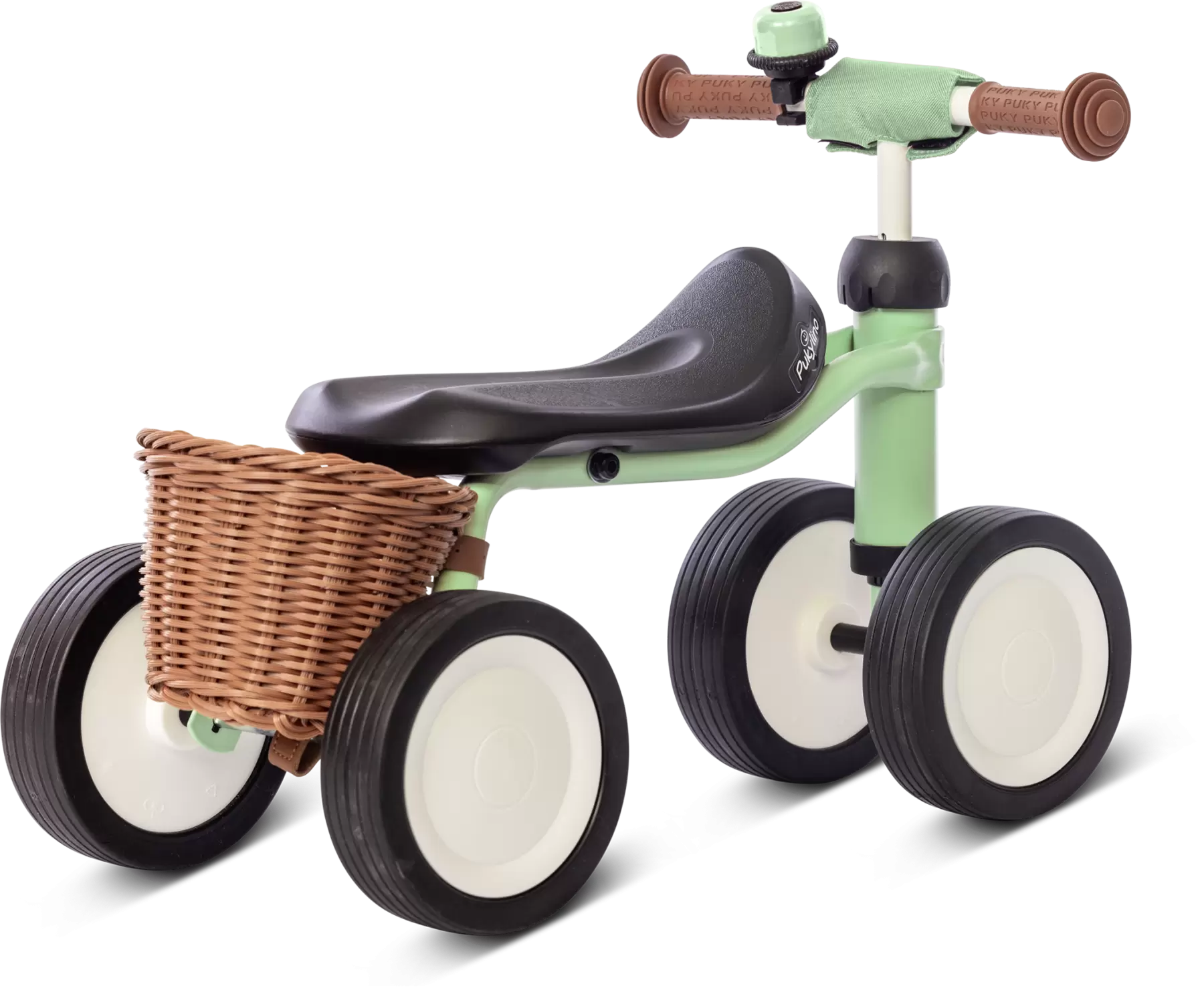 PUKYLINO - My first PUKY w kolorze zielonym z dzwonkiem, koszyczkiem Panda oraz zabezpieczeniem na kierownicę.
