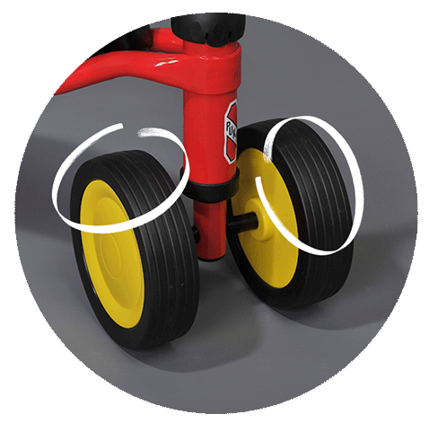 - Miękkie - ciche koła. Plastikowe koła, pokryte miękką gumą, czynią pojazd bardzo cichym. Dzięki temu można go spokojnie używać w mieszkaniu. Koła posiadają również doskonałą przyczepność.