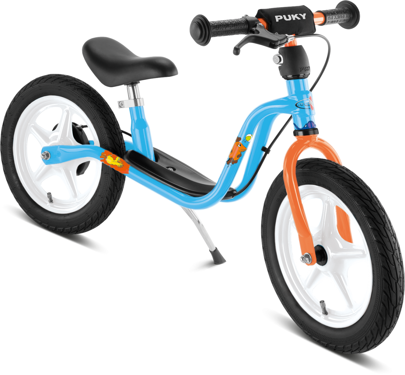 PUKY LR1 L - rowerek biegowy w kolorze niebieskim z myszką (Puky Die Maus) z pompowanymi kołami oraz hamulcem.