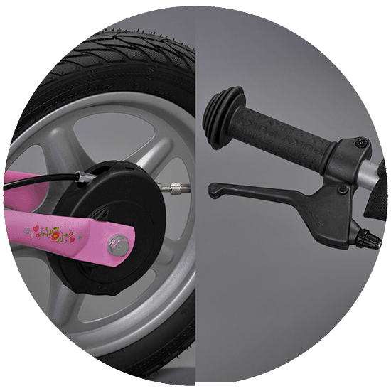 - Łatwy do opanowania dla dziecka hamulec. Wszystkie hamulce PUKY zostały specjalnie zaprojektowane dla naszych pojazdów i są sukcesywnie ulepszane. Wykonanie hamulców dla dzieci wymaga dużego doświadczenia w przystosowaniu ich do wymagań dziecka. Oczywiście opracowane naukowo normy określają maksymalne i minimalne siły hamowania. Ale anatomia dziecka stanowi dodatkowe wyzwanie dla naszych projektantów. Niewielka średnica naszej kierownicy i chwytów pozwalają pewnie uchwycić kierownicę podczas hamowania, specjalnie dostosowane dźwignie hamulcowe szczególnie dobrze nadają się dla dziecięcych małych dłoni, a specjalne okładziny hamulców umożliwiają płynne hamowanie.