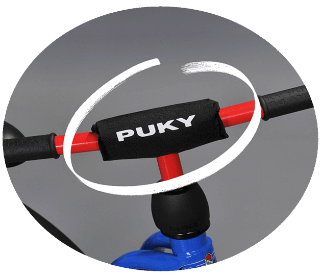 - OSŁONA KIEROWNICY. Żaden mistrz jeszcze nie spadł nam z nieba, ale każdy świetny kolarz spadł kiedyś ze swojego rowerka. Tak więc, na wszelki wypadek, żeby konsekwencje upadku były jak najmniejsze, w naszych rowerkach zakładamy dużą osłonę kierownicy. Minimalizuje to uderzenie w kierownicę. Jak zwykle w PUKY, materiał osłony i pianka oczywiście zostały poddane testom TÜV, posiadają certyfikat GS, są wolne od zanieczyszczeń, odporne na promieniowanie UV i wyjątkowo odporne na ścieranie.