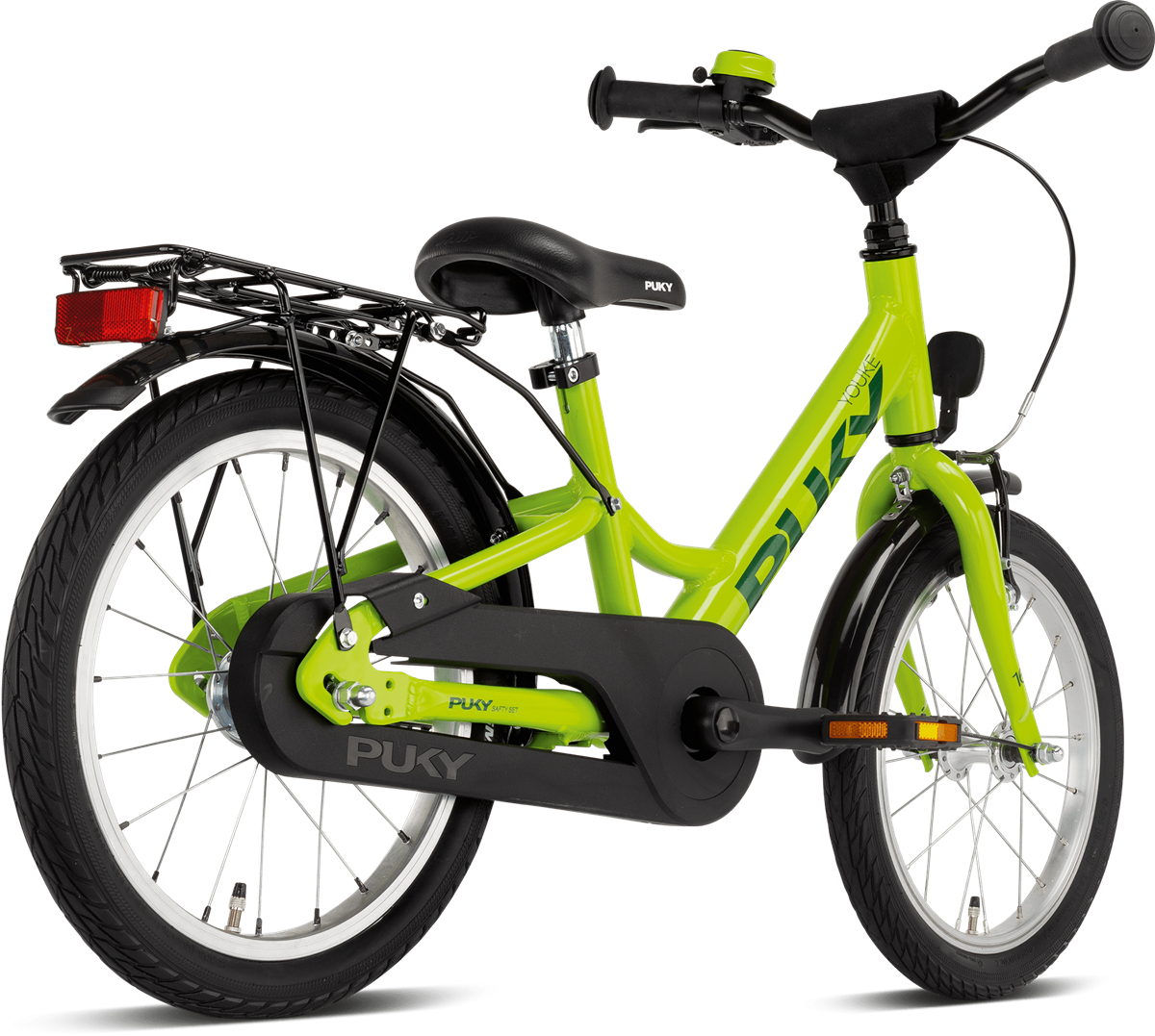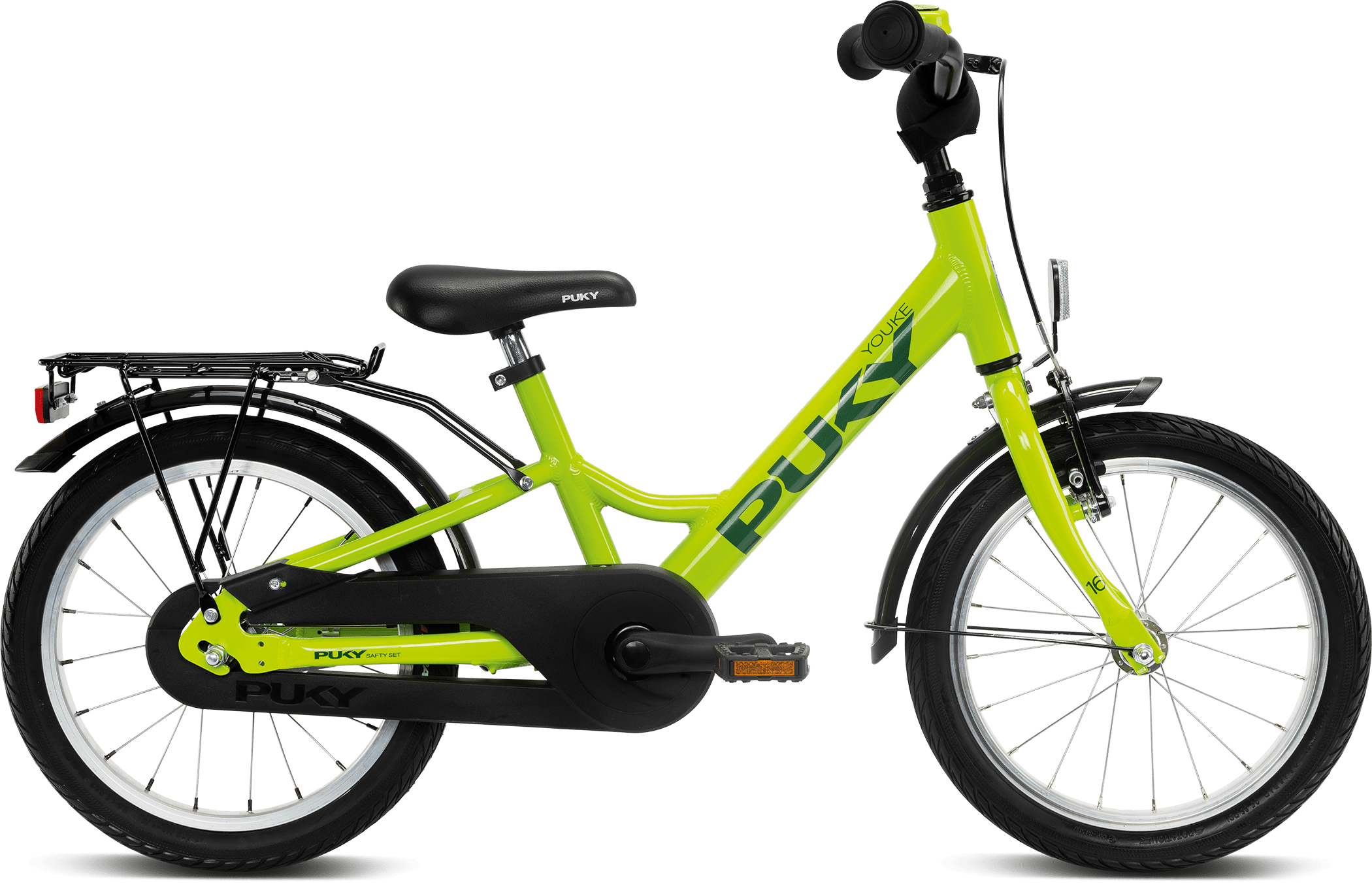 Nowy dziecięcy rower YOUKE 16 to wspaniały rower na przejażdżki, dlatego wyposażony jest w bagażnik. Dodatkowo zamontowano przeznaczone dla dzieci hamulce typu V-brake, błotniki oraz Zestaw Bezpieczeństwa PUKY.