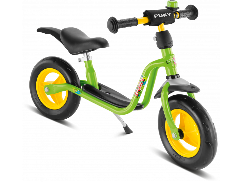PUKY LRM Plus - rowerek biegowy w kolorze zielonym (kiwi) z błotnikiem, dzwonkiem i nóżką.