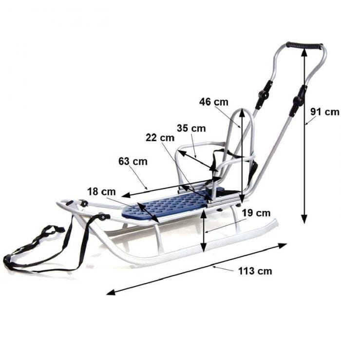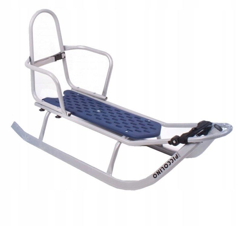 Sanki dla dziecka z oparciem i pasami bezpieczeństwa, sanki w kolorze granatowo - srebrny. Sanki z możliwością dokupienia wielu elementów dodatkowych, rosną razem z dzieckiem i posłużą na lata. Wygodne i bardzo trwałe metalowe sanki z siedziskiem wykonanym z mocnego plastiku. Odpowiednia grubość stali, wyprofilowanie i kształt zapewnią świetną zabawę na sniegu i bezpieczeństwo.