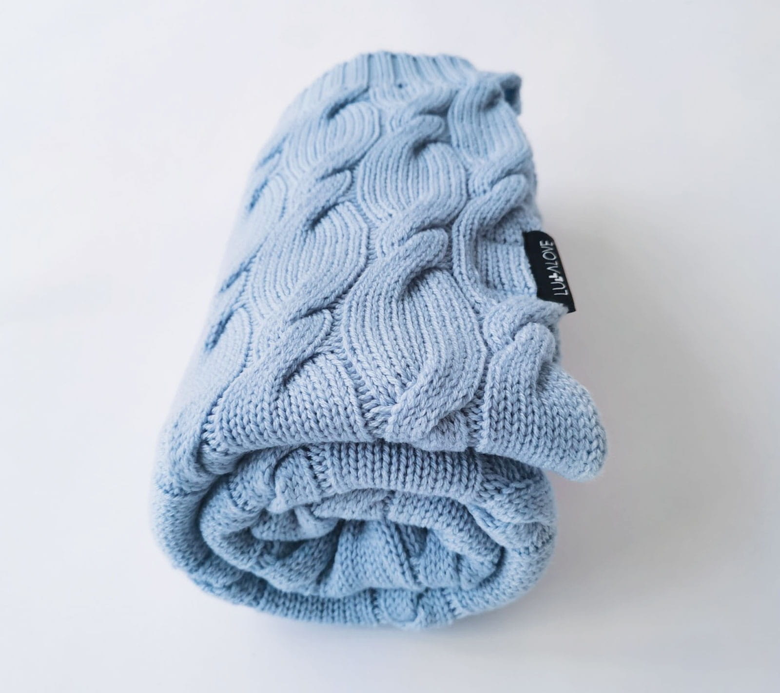 Kocyk z Wełny Merino 80x100 cm Błękitny Warkocz - Lullalove