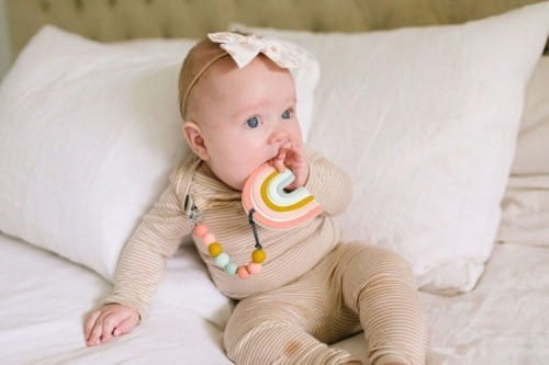 Gryzak z zawieszką loulou LOLLIPOP posiada różnorodną fakturę, może być chłodzony lub zamrażany, by przynieść ukojenie podczas ząbkowania. Luksusowa zawieszka z gryzakiem jest w całości wykonana z silikonowych elementów. Silikonowy gryzak dla niemowląt bezpieczny już od pierwszych dni życia. Klips można przypiąć do ubranka, otulacza, wózka lub fotelika i dzięki temu ulubiony gryzak zawsze jest pod ręką dziecka, z dala od brudnej podłogi i nigdy się nie zgubi.